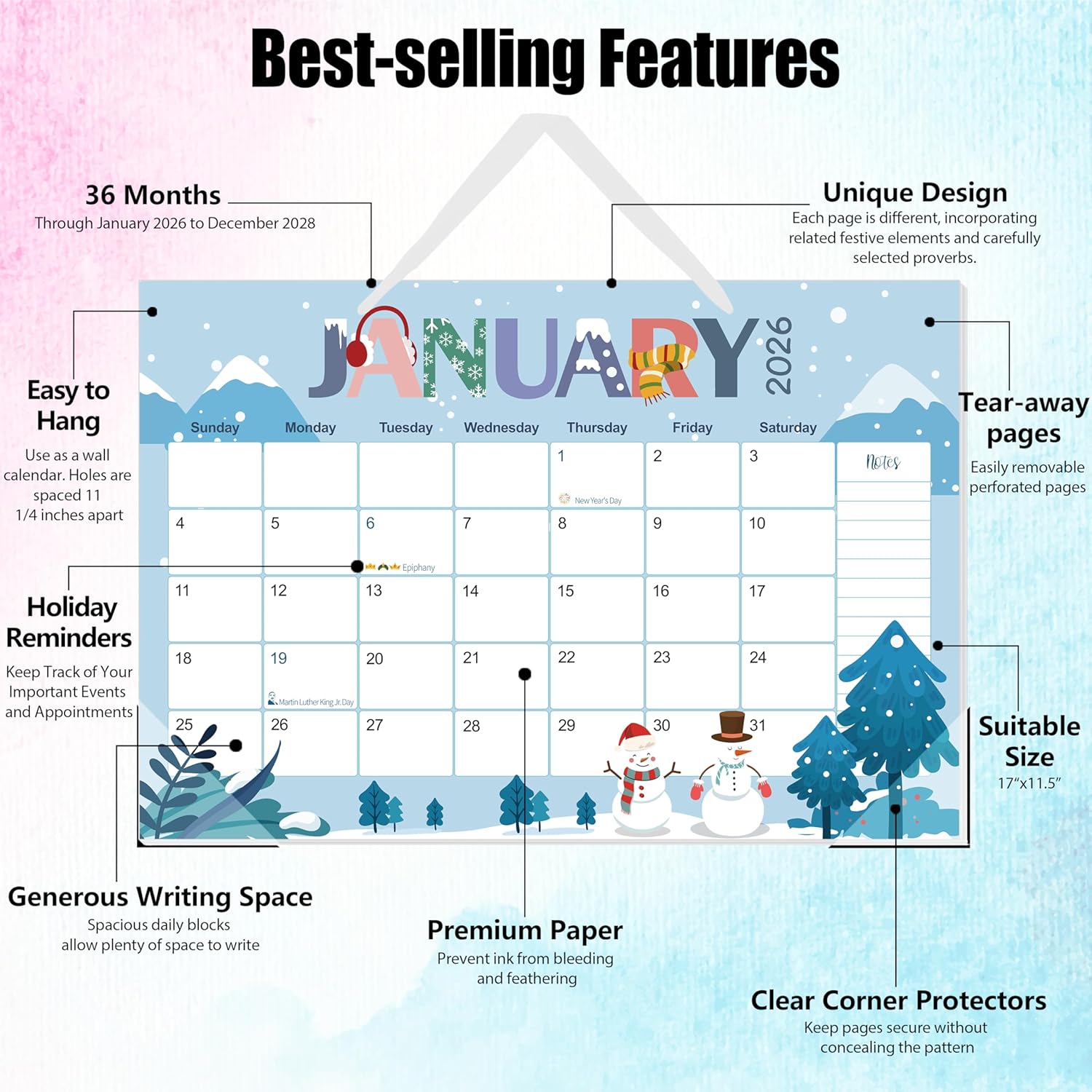 - Organize with Style: Our academic calendar 2026-2028 wall has a generous layout with large daily blocks, making it easy to write down appointments, events, and reminders. Plus, each month highlights important holidays, so you’ll never miss a beat. Get your life in order with this stylish and fun organizer that makes planning feel like a party!