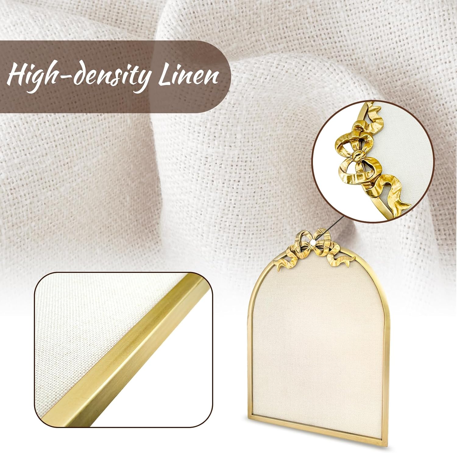 Vintage Arched Linen Cork Board with Gold Bowknot – Decorative Bulletin Board for Walls, Iron Frame Pin Board for Notes, Photos & Reminders, Elegant Vision Board for Home & Office 16"x21"