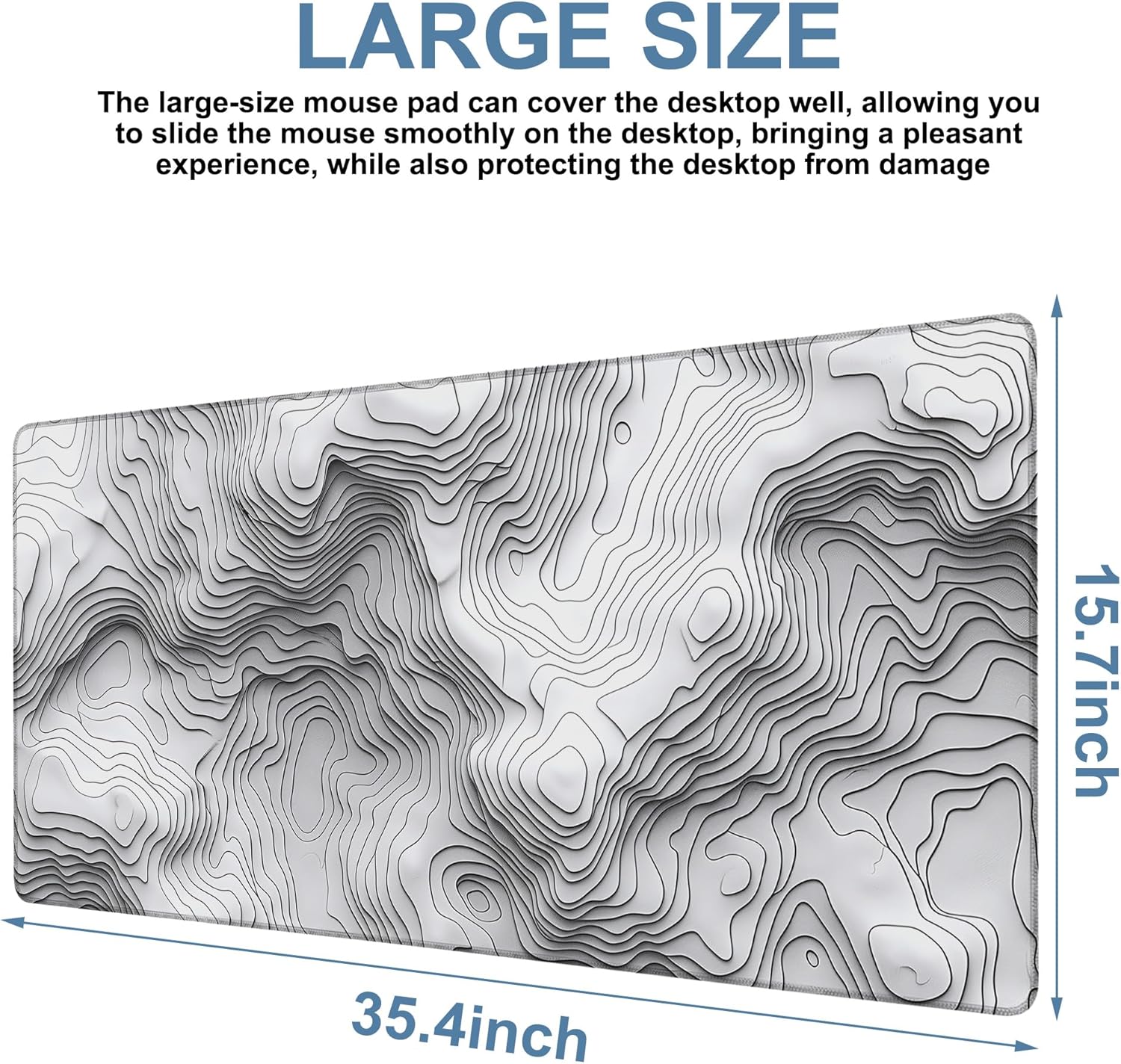 Large Mouse Pad Wave Lines Gaming Desk Pad Computer Keyboard Non-Slip Waterproof Mouse Mat with Rubber Base and Stitched Edges Entertainment Office Writing Desk Mat 35.4 x 15.7 Inches