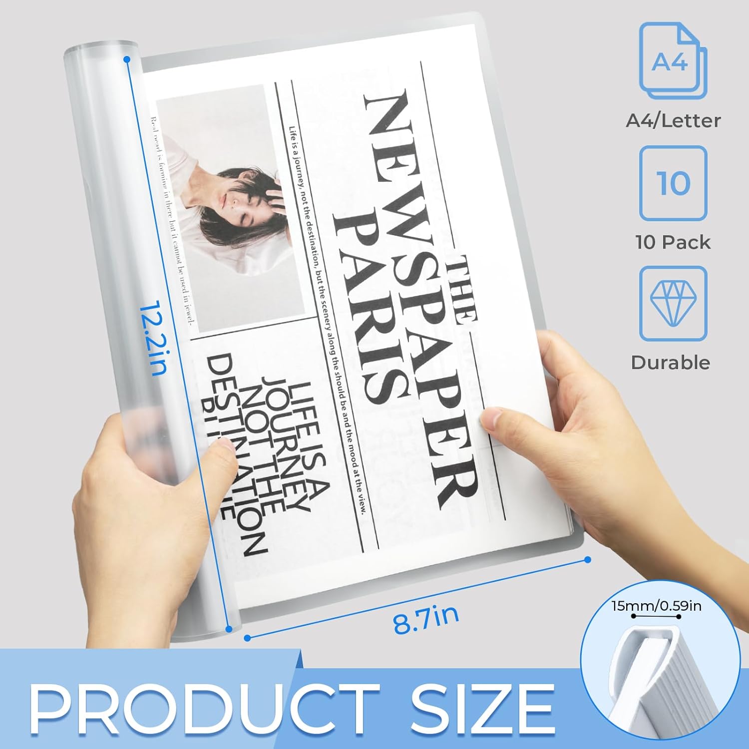 - Report Covers Size: The clear report covers measure 8.7 * 12.2 inches, they are great fit for both A4 size and US letter size paper (11 x 8.5 inches)