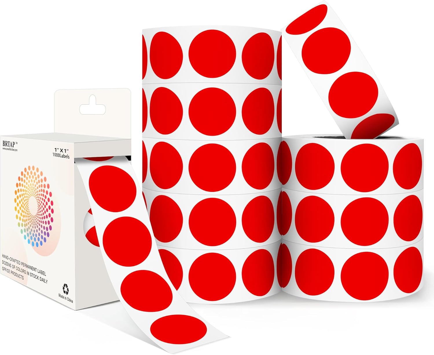 - ✅ 1-Inch Circular Color Coded Label -1000 dots per roll, a total of 10 rolls. The circle color dots are used for organization and long-term use, suitable for high-frequency use scenarios such as warehouses, offices, schools, etc. 1-inch standard round label for handwritten marking, suitable for enterprise procurement, teacher lesson preparation, and home storage