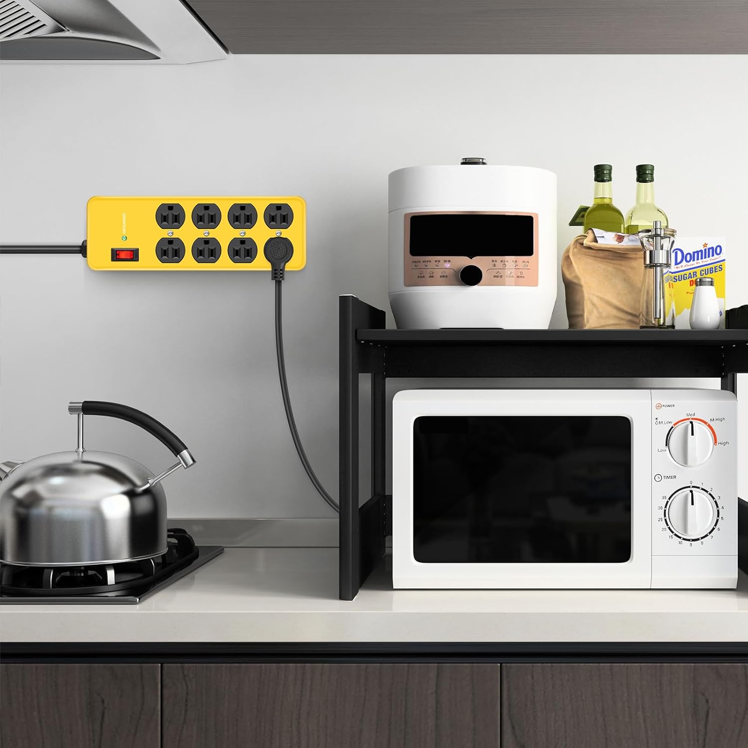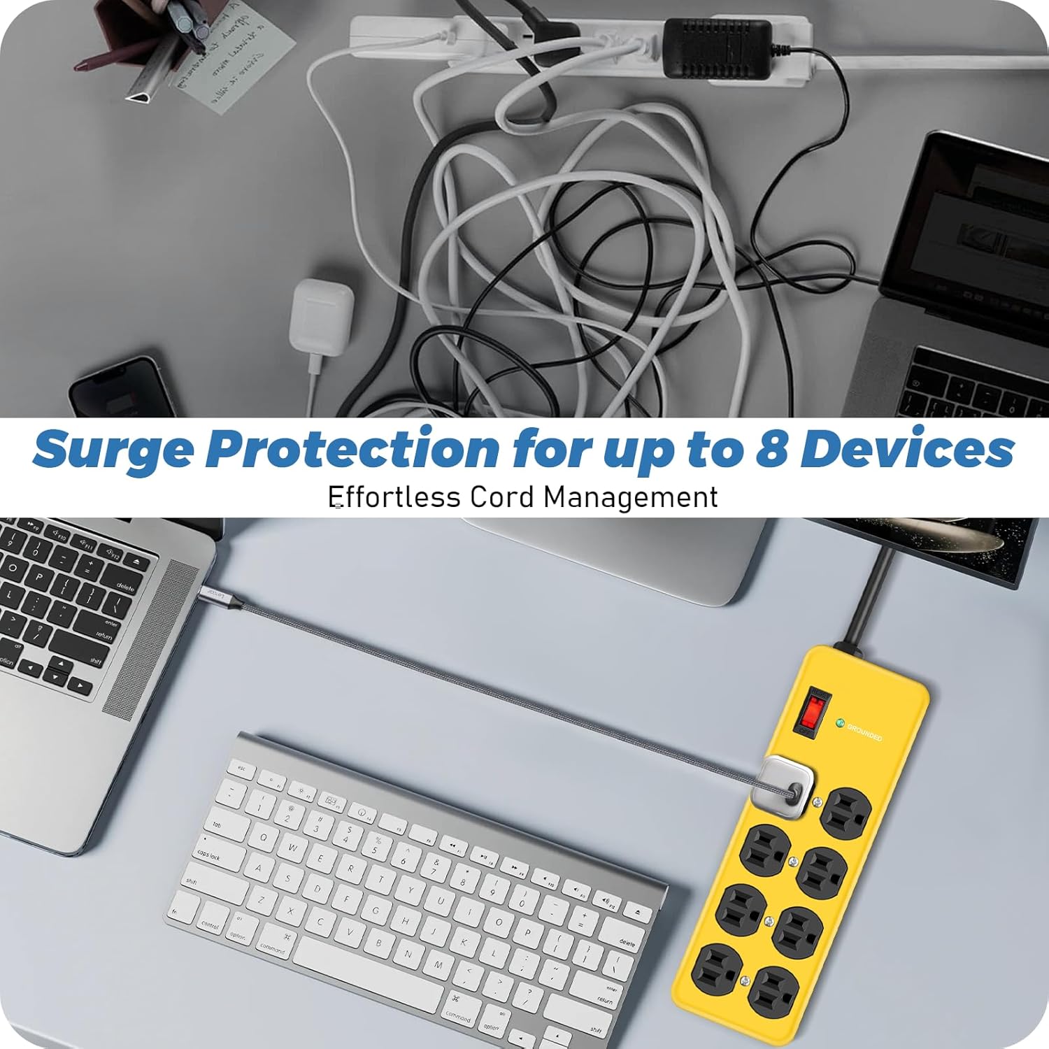 - Security Protection:This power strip features a built-in 2700J surge protector and 15A circuit breaker overload protection,short circuit protection,overcurrent protection,overvoltage protection,and overheat protection.The surge protector with overload protection protects your appliances from lightning,surges,or spikes,and when the voltage surge is overwhelming,it automatically cuts off the power to protect connected equipment.