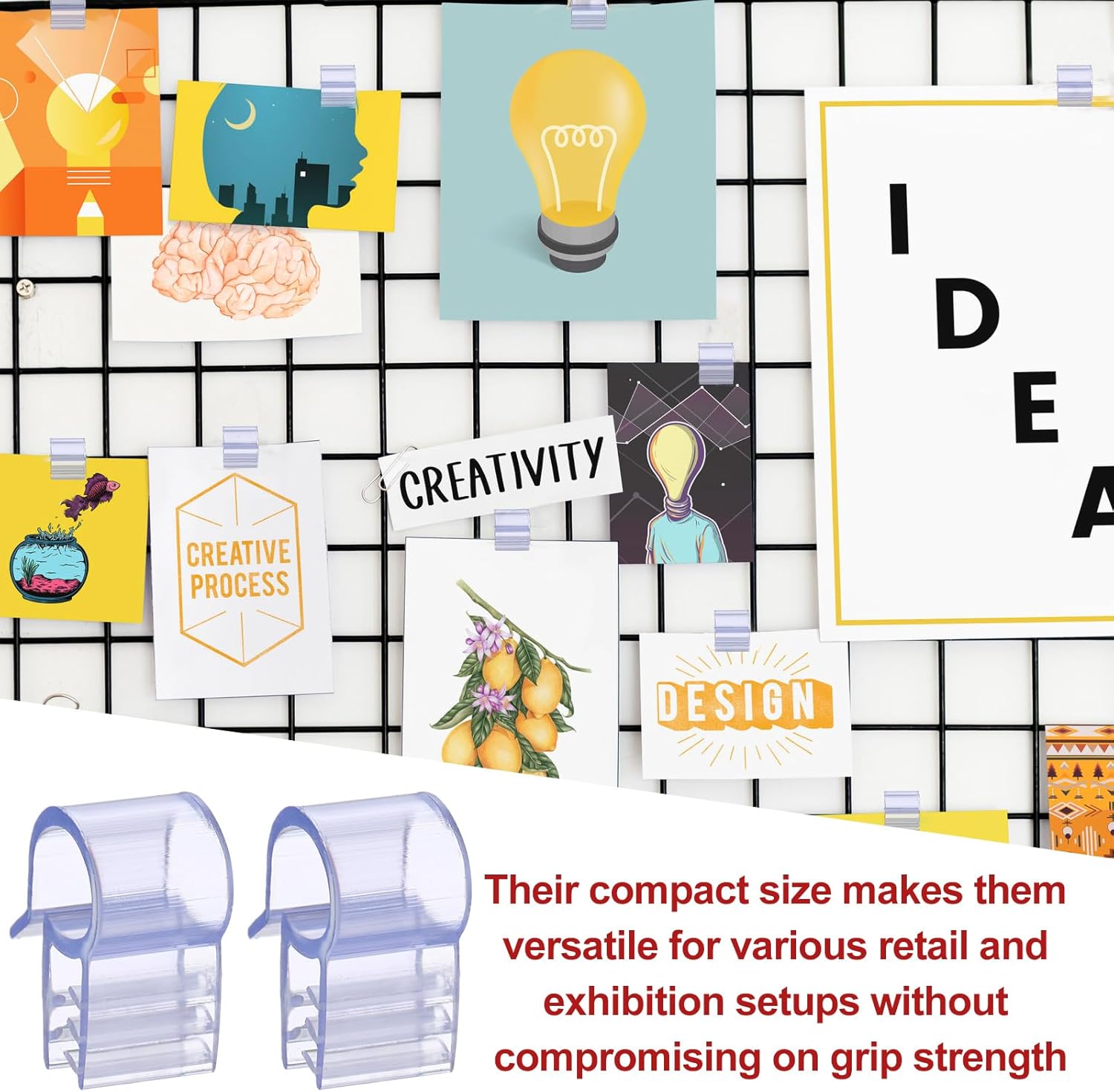 - Versatile Size for Diverse Needs: measuring approximately 1/2 inch wide by 3/4 inch high, these panel wall clips are engineered to fit grids with wire up to 3/8 inch in diameter; Their compact size makes them versatile for various retail and exhibition setups without compromising on grip strength