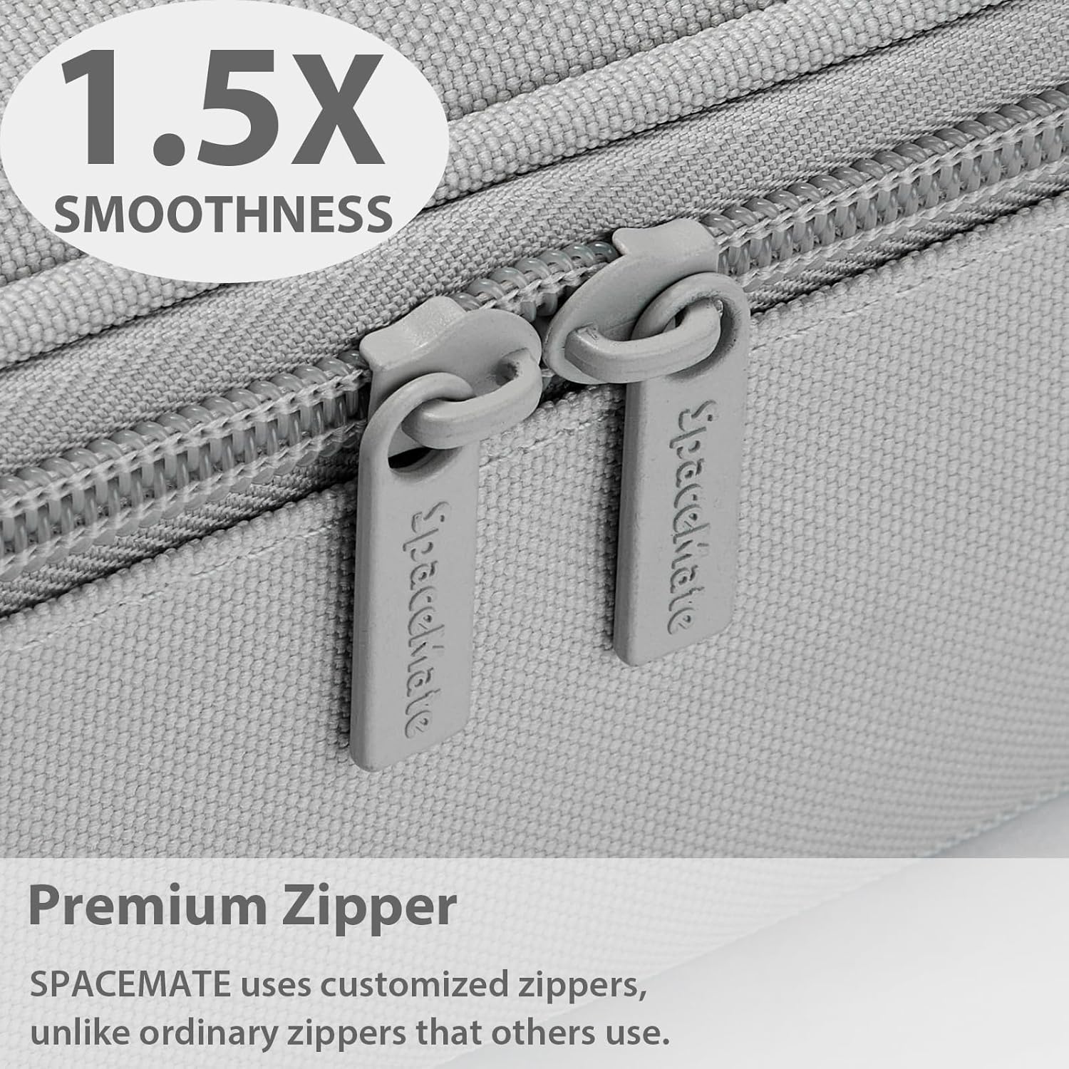 - SPACEMATE's pencil pouches have unique customized zippers, which is 2 times smoother than other's. The zippers work great and never get caught on the material.