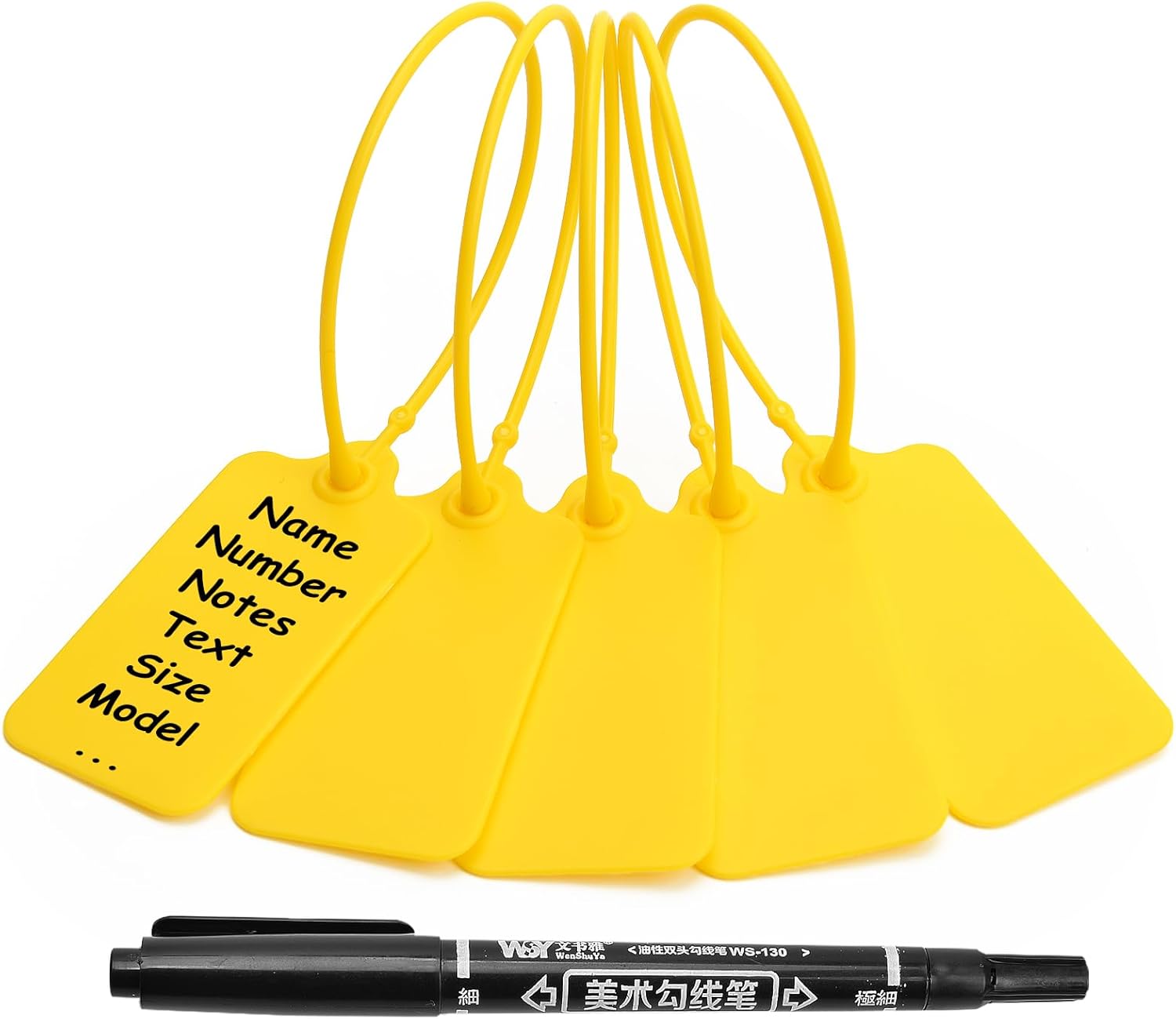 - Writable Tags: The blank platic seal tags can be written on with permanent markers to clearly identify assets. Package include: 50pcs yellow tags and one permanent marking pen.