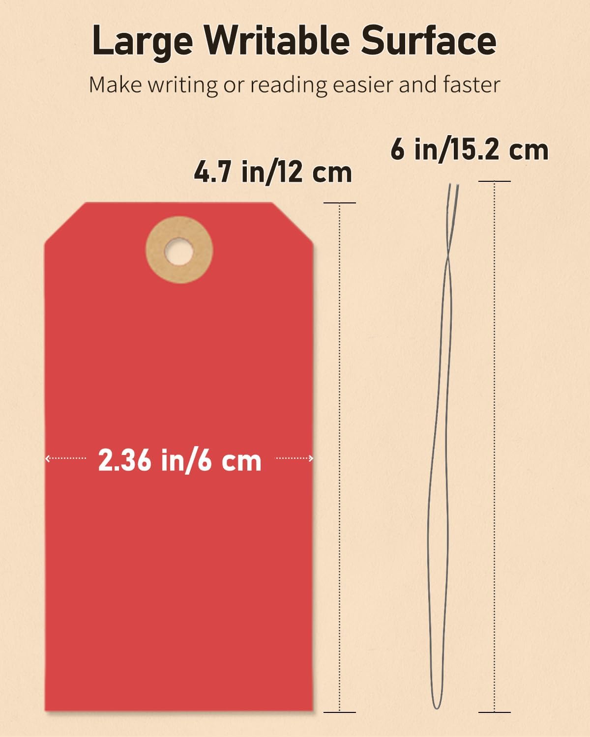 - Versatile Hanging Tags: Totally 100 red Blank tags are perfect for marking goods, clothes, jewelry, stationery, crafts, toys, luggage, etc. Great to be used as price tags, shipping tags, inventory tags and so on