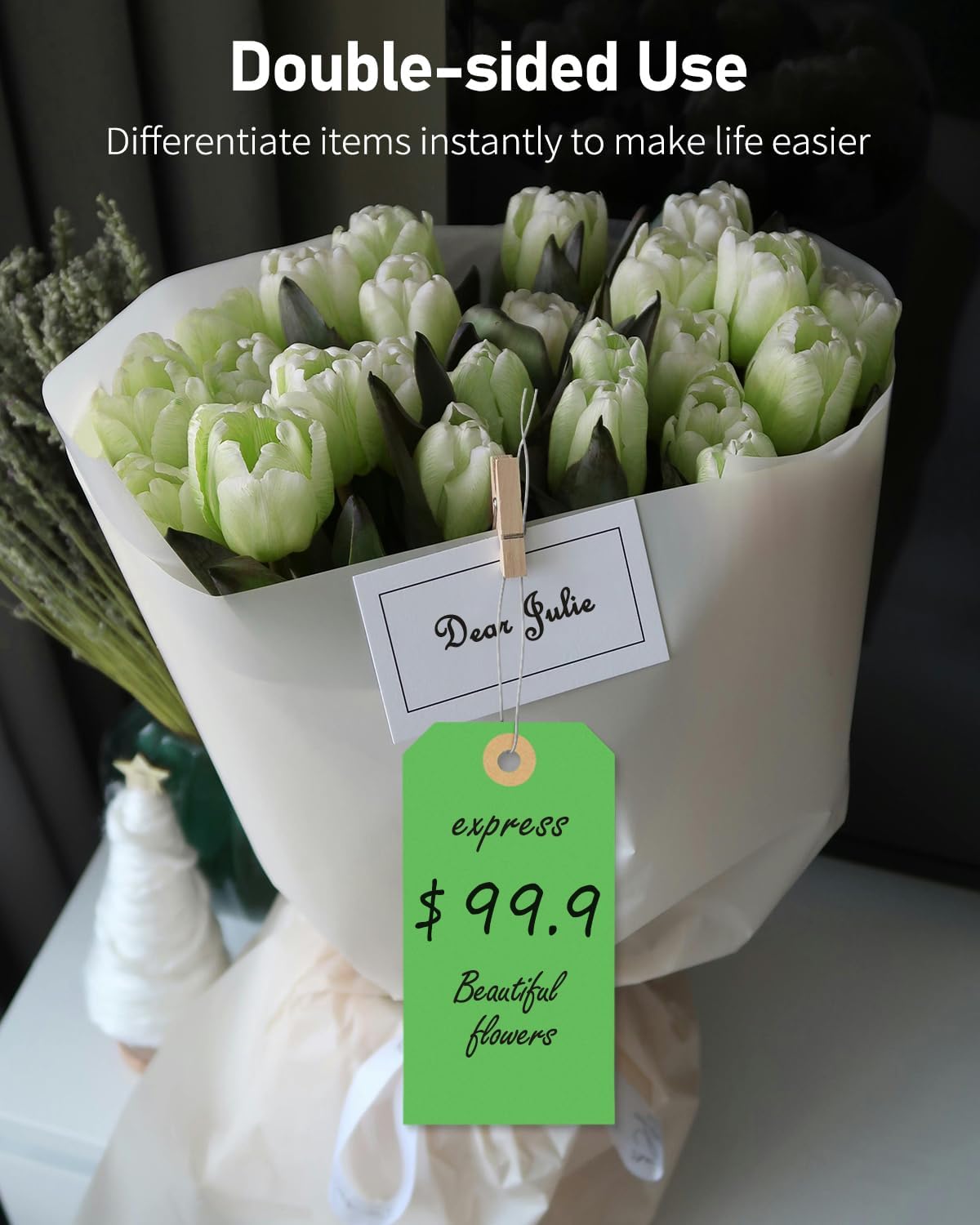 - Versatile Hanging Tags: Totally 100 green blank tags are perfect for marking goods, clothes, jewelry, stationery, crafts, toys, luggage, etc. Great to be used as price tags, shipping tags, inventory tags and so on