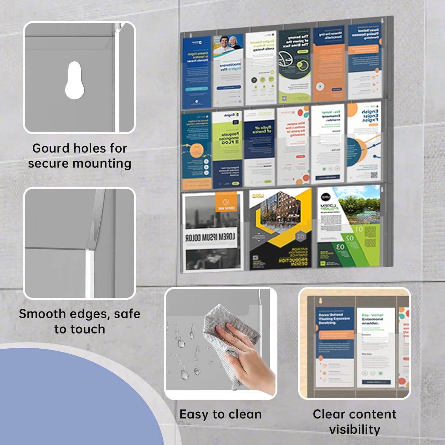 - Versatile Application: Perfect for organizing and displaying flyers, documents, menus, cards and more in offices, waiting rooms or retail spaces (Note: Remove protective film before use)