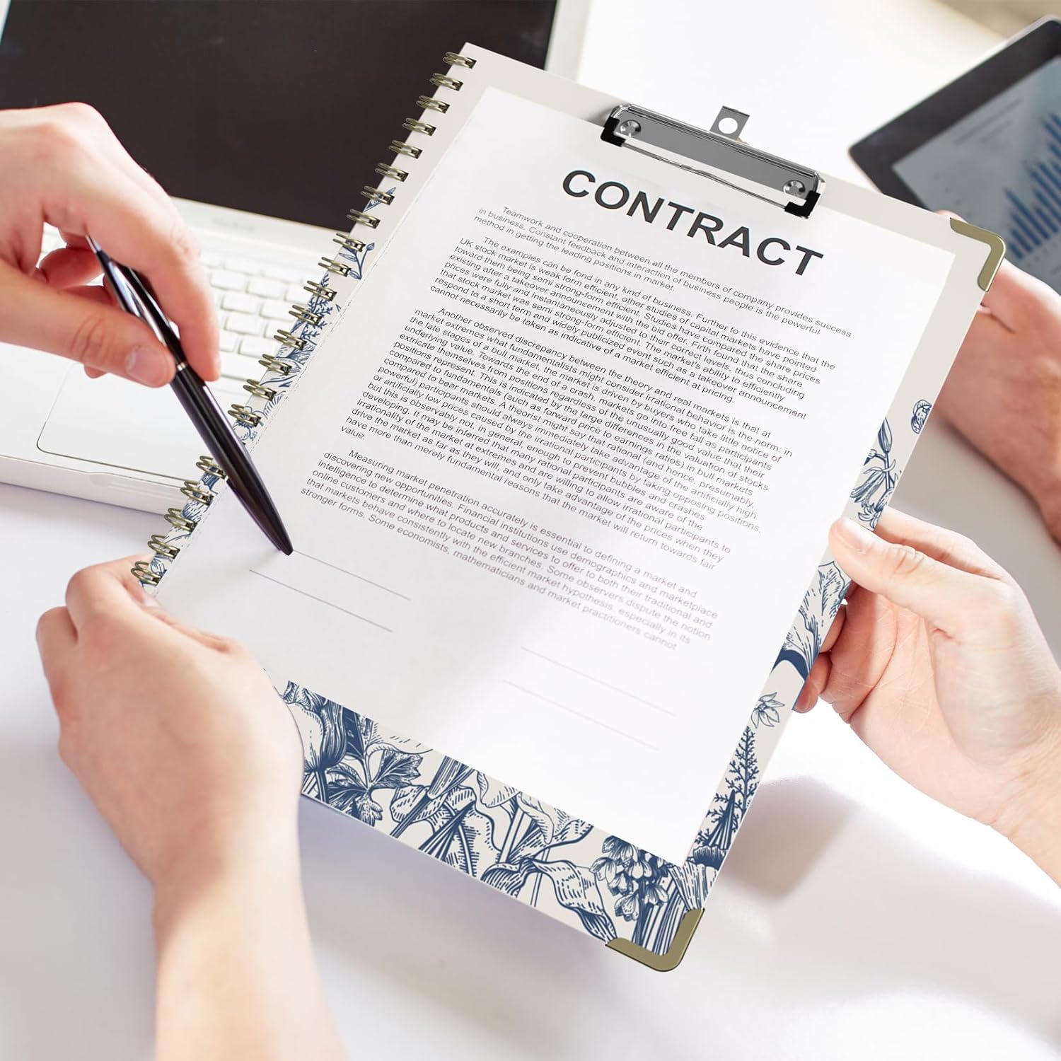- 【Substantial Quality】Our clipboard folder featuring stunning full-color printing with a glossy lamination finish. Use sturdy metal clip with gripping. Twin wire spiral allows to flip the cover, no creases and cracks to offer durability. Clipboard with storage’s four corners are reinforced with metal, enhancing the clipboard's resistance to wear and tear. The removable notepad won't bleed ink