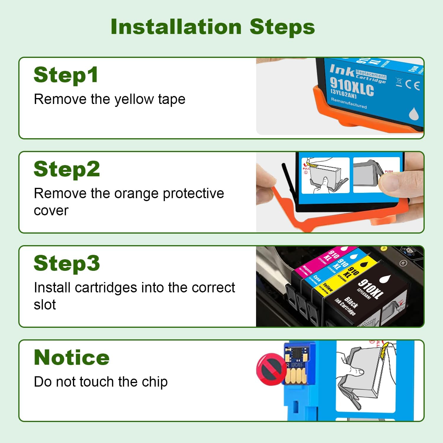 - Chip Upgrader Technology: Mintink Replacement for HP 910XL yellow ink cartridges come with an advanced chip upgrader to resolve compatibility issues caused by printer firmware updates, ensuring seamless performance and uninterrupted printing