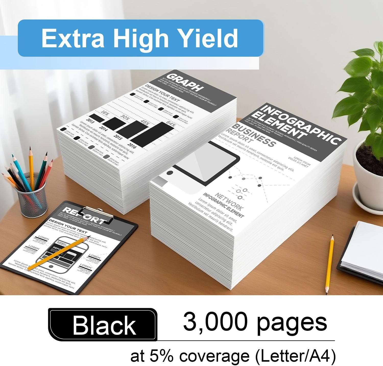 - High Page Yield: the page yield for TN229XL black is up to 3000 pages for each black(at 5% coverage/Letter A4)