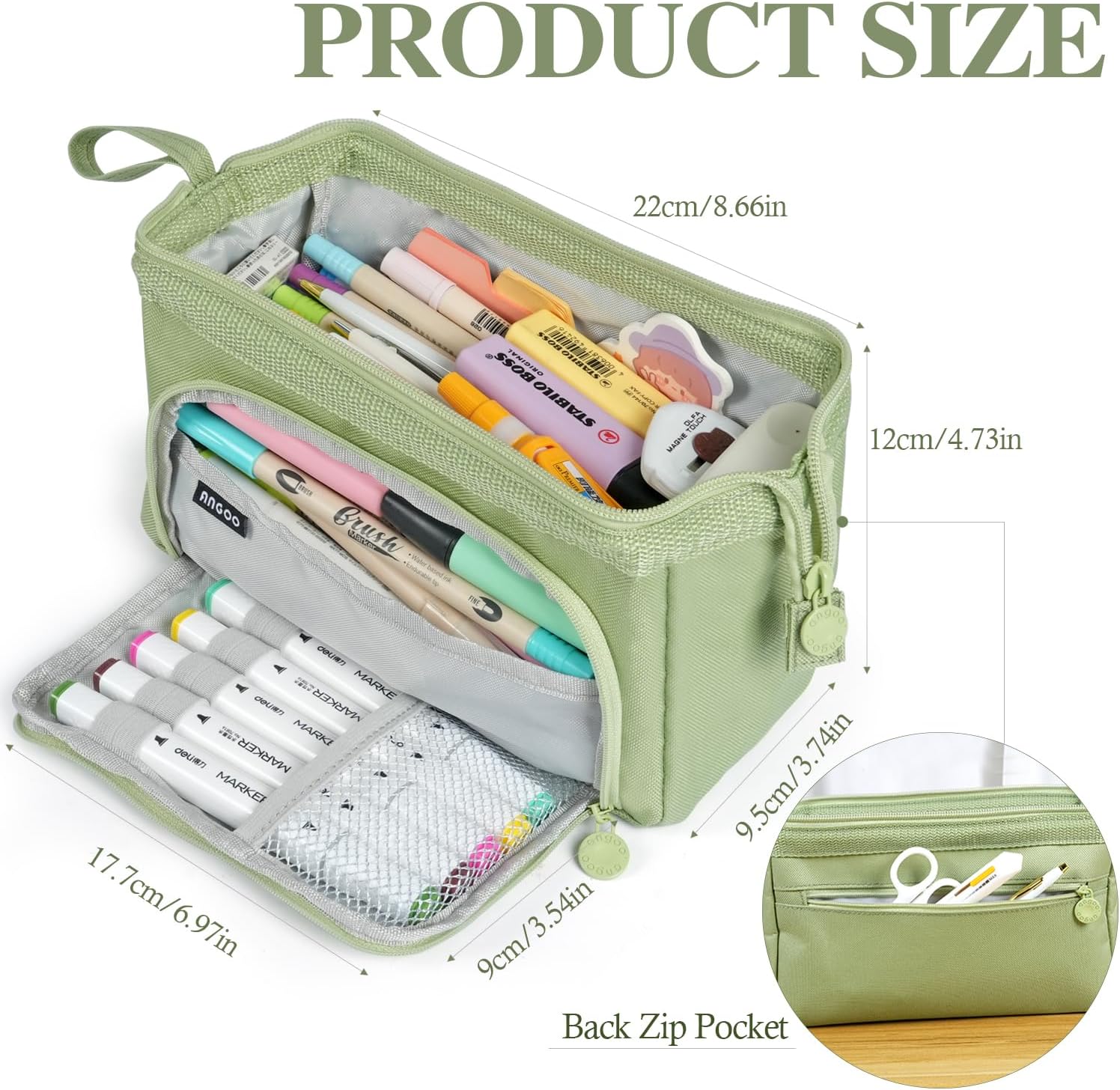 Pencil Case Pouch Large Capacity with Compartments, Pencil Case Pouch Bag with Zipper Handle for Teen Girls Boys Adults Women Men, Portable Pen Bag Stationery Organizer for Office School Travel, Green