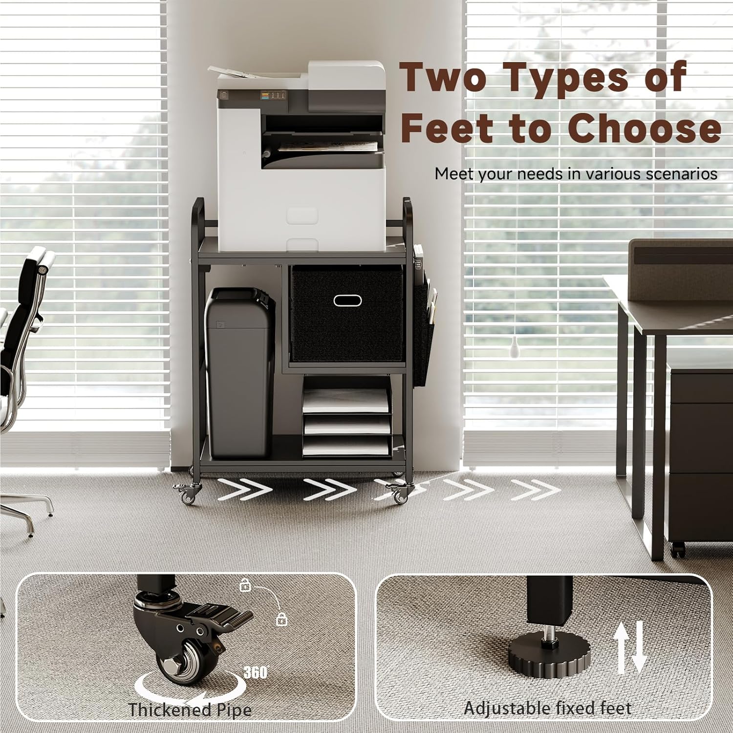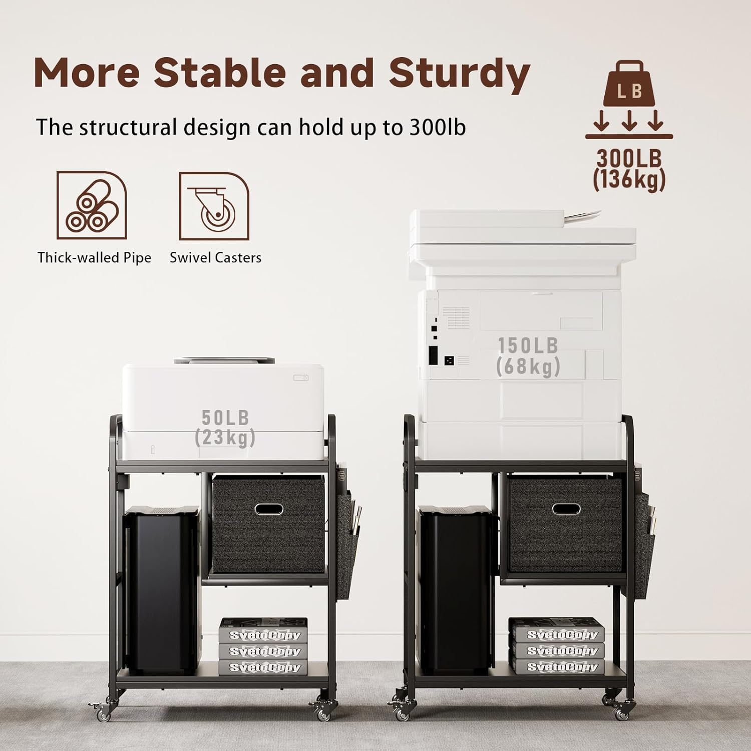- MULTI-PURPOSE USE: This printer shelf fits most printers, scanners, fax machines, PC towers, shredders or 3D printers. Beyond the office, use it as a microwave or coffee station in the kitchen, a nightstand, side table, balcony shelf, or craft organizer. Perfect for offices, bedrooms, living rooms, and more.
