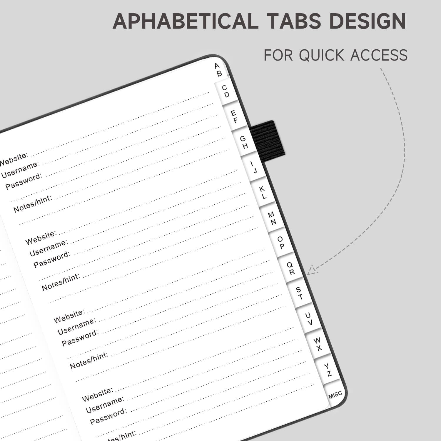 - Alphabetical Tabs (AB - YZ) - Alphabetical tabs allow you to organize your login details and help you find your passwords quickly, no more annoying searches!