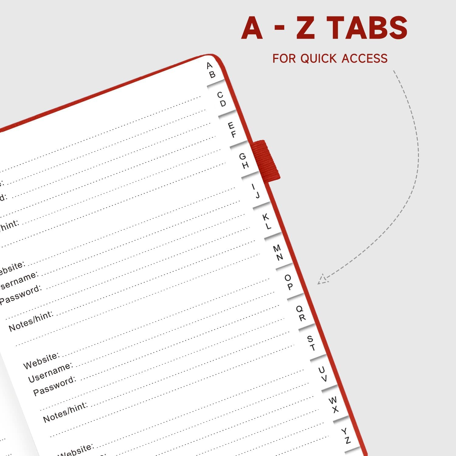 Password Book with Alphabetical Tabs – Hardcover Internet Address & Password Organizer – Password Keeper Notebook for Computer & Website – 7x 10" Log-in Password Journal w/Thick Paper (Red)