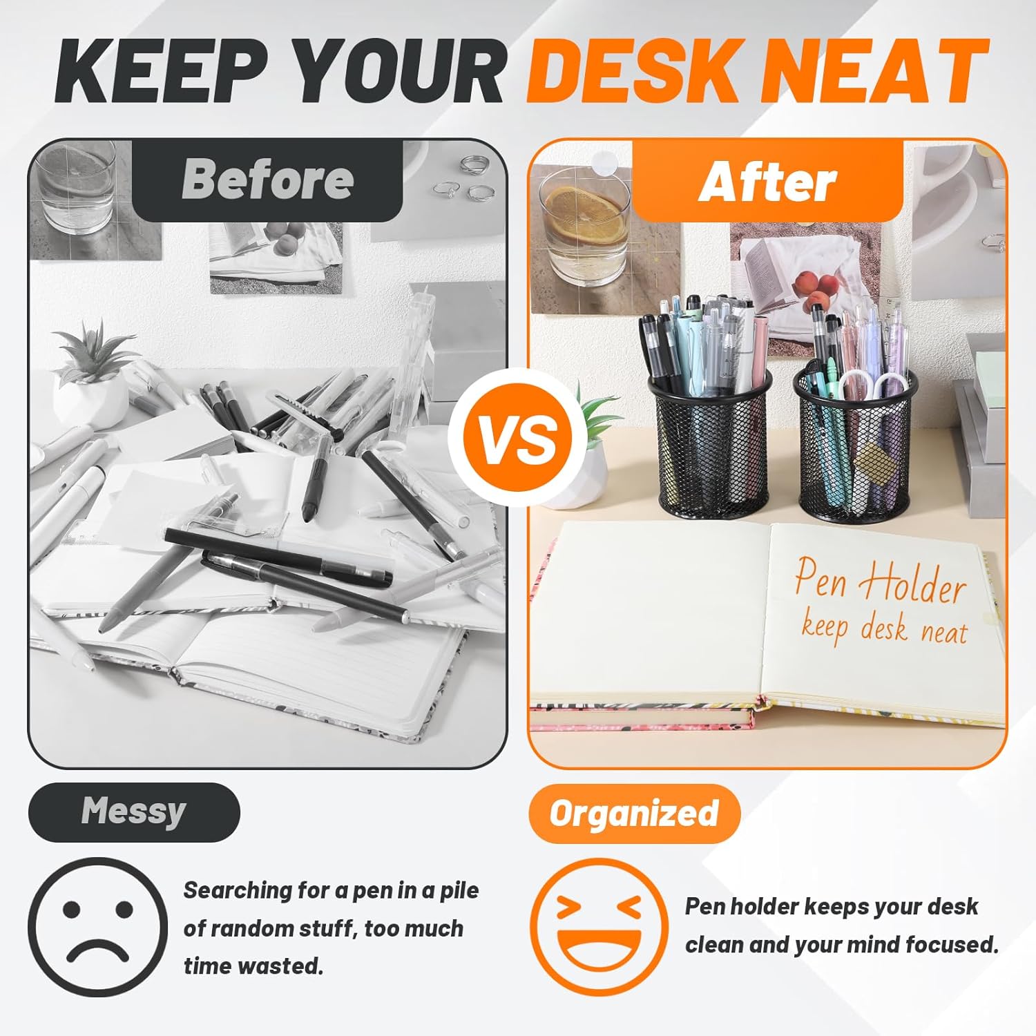 - Pencil Holder for Keeping Desktop Neat - Say goodbye to messy desk and drawers. This desk pen cup holder keeps pens, pencils, scissors, markers, rulers and more office supplies neatly in place. Whether you're working, studying, or crafting, it helps keep your space clean and focused. Great for classroom students, office workers, or home use.