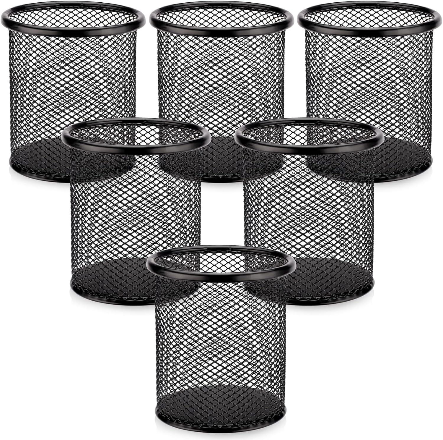 Segarty Pen Holder, 6 Pack Round Black Pen Cup Holder for Desk, Wire Mesh Pencil Containers Set for Office Supplies, School Maker, Home Desktop Accessories Organizer, Makeup Brush