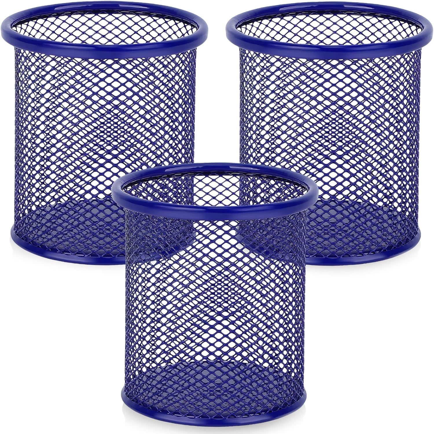 Segarty Pen Cup, 3 Pack Round Cute Dark Blue Pen Holder for Desk, Wire Mesh Pencil Holder Container Set, Desktop Organizer for Office Supplies, Maker, School, Home Storage, Makeup Brush