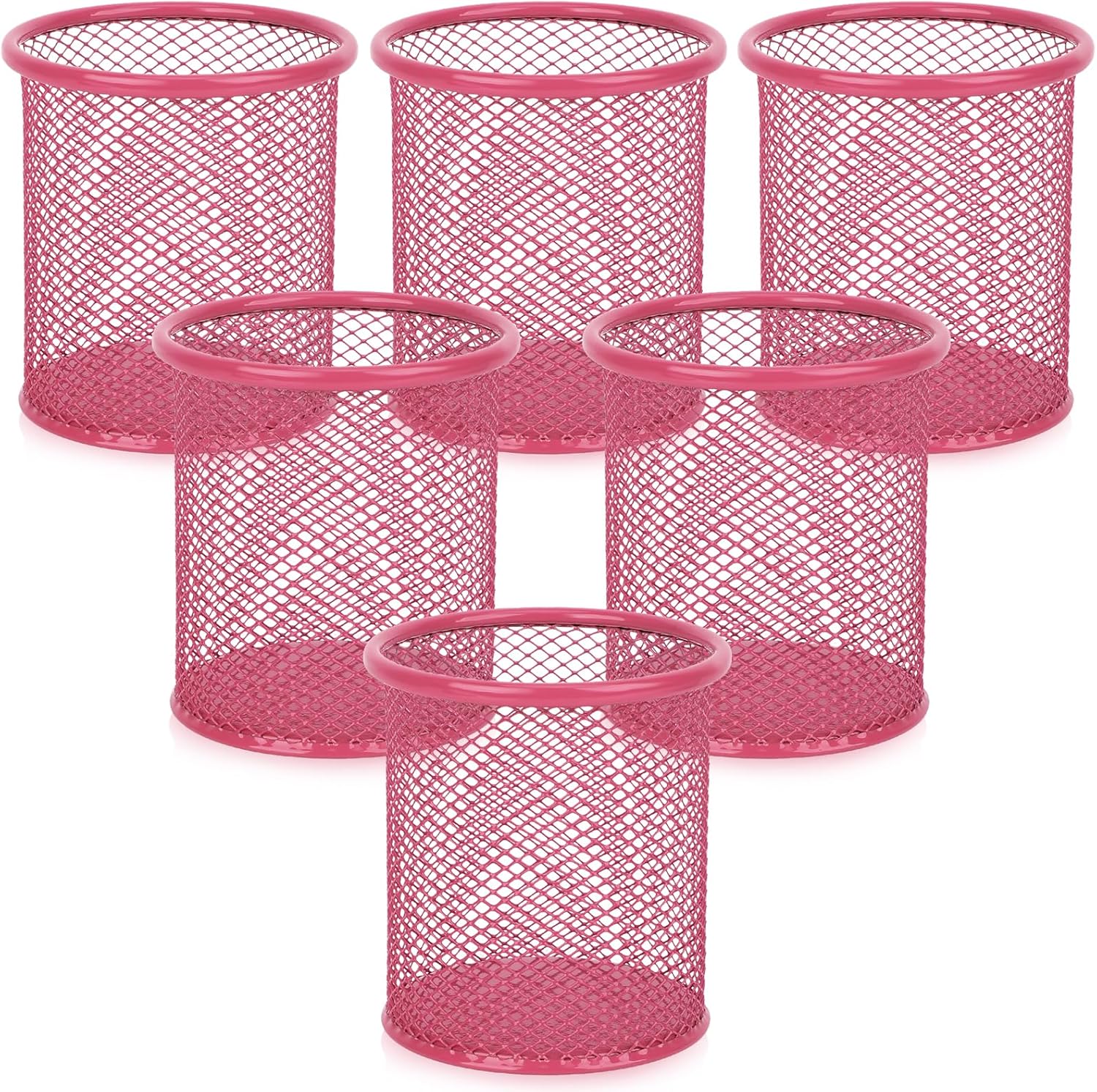 Segarty Pen Cup, 6 Pack Cute Dark Pink Pen Holder, Round Mesh Pencil Holder for Desk, Desktop Accessories Organizer for Office Supply, School, Home Storage, Makeup Brush Organization