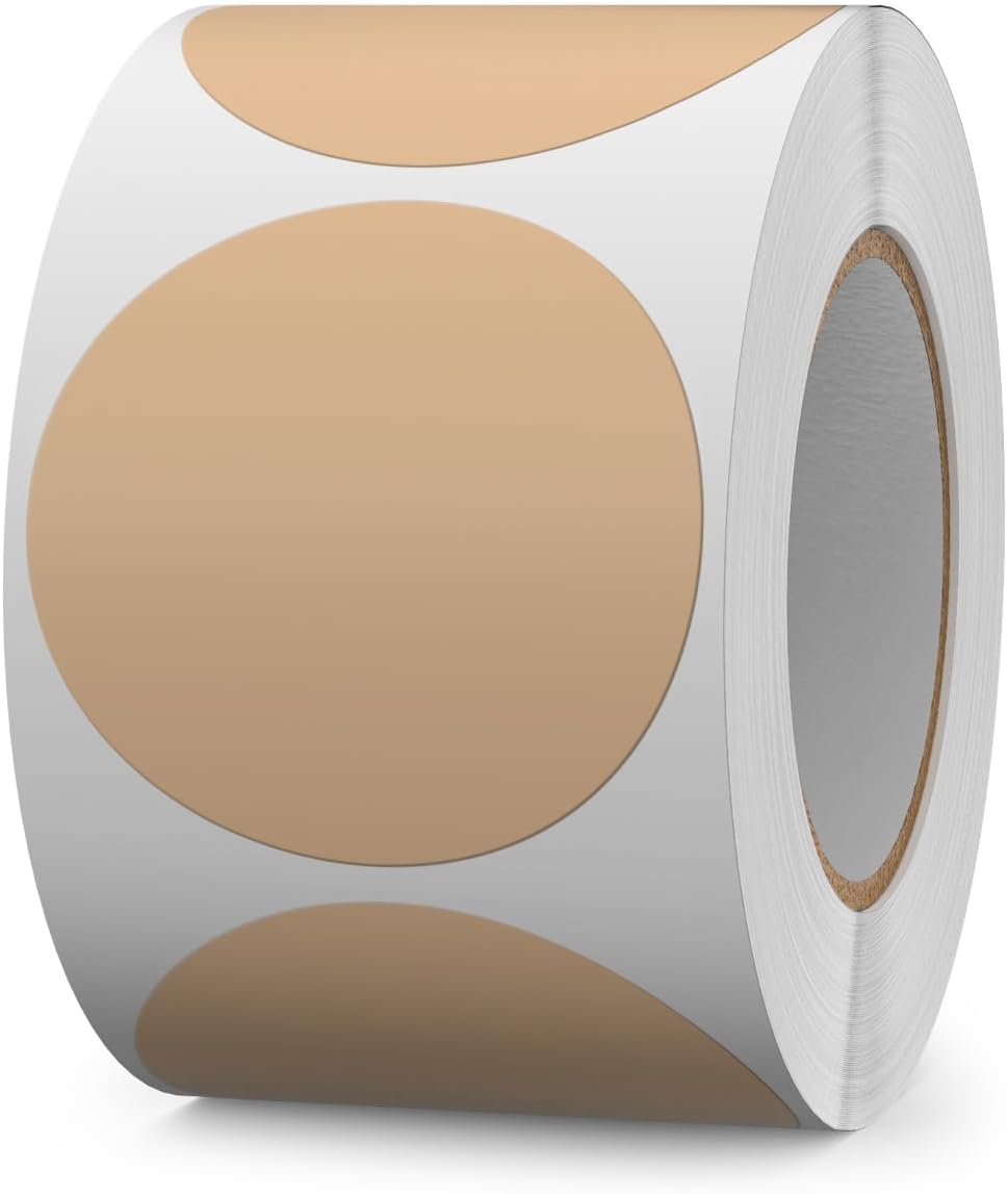 500 PCS Circle Dots Stickers 2 Inch Vinyl Kraft Round Labels Removable Waterproof Color Coding Sticker Roll for Office Inventory Garage Yard Sale Tag
