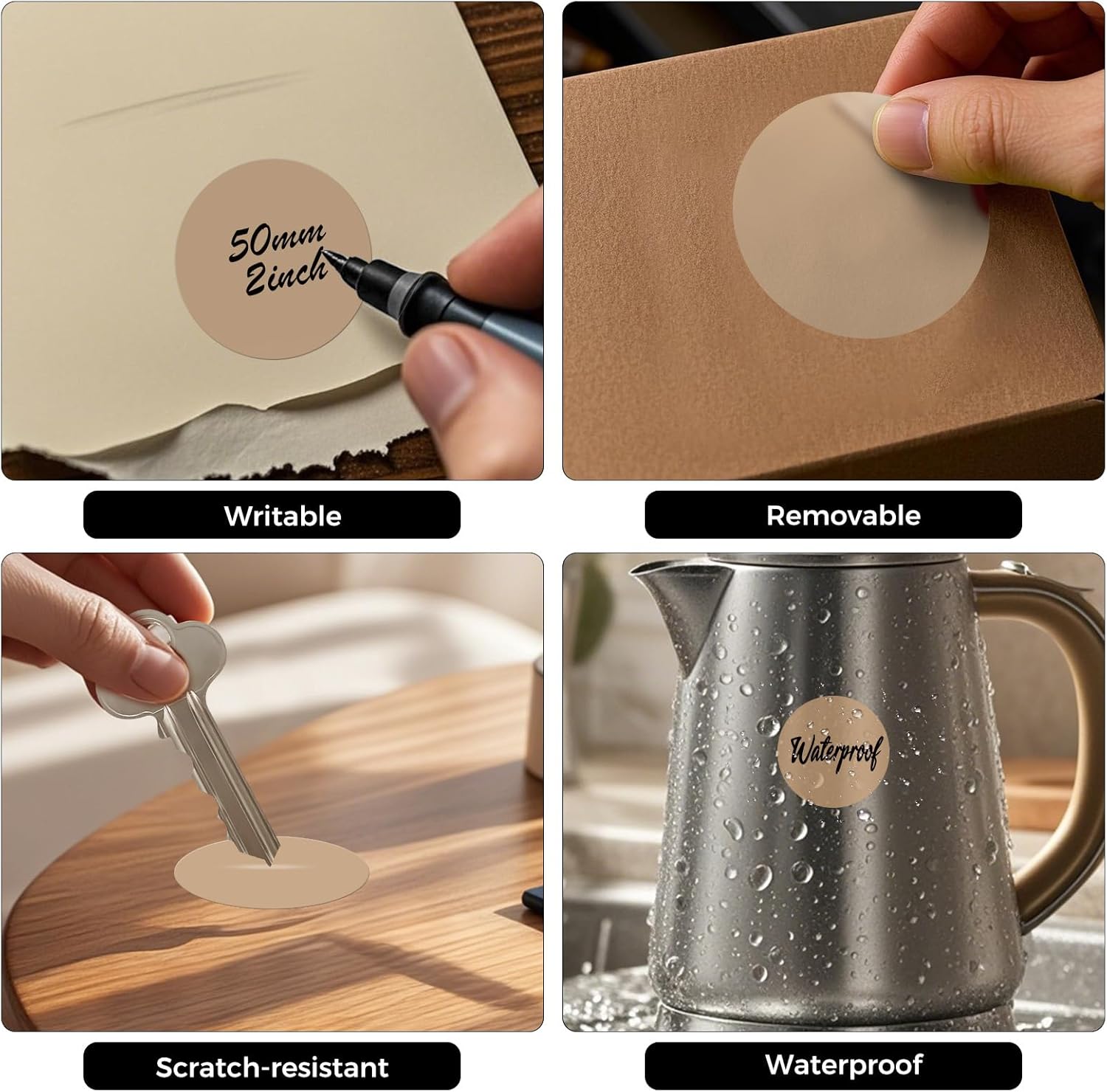 - Durable to Use: Made of premium vinyl, our circle labels are waterproof, scratch resistant, writable, and removable.