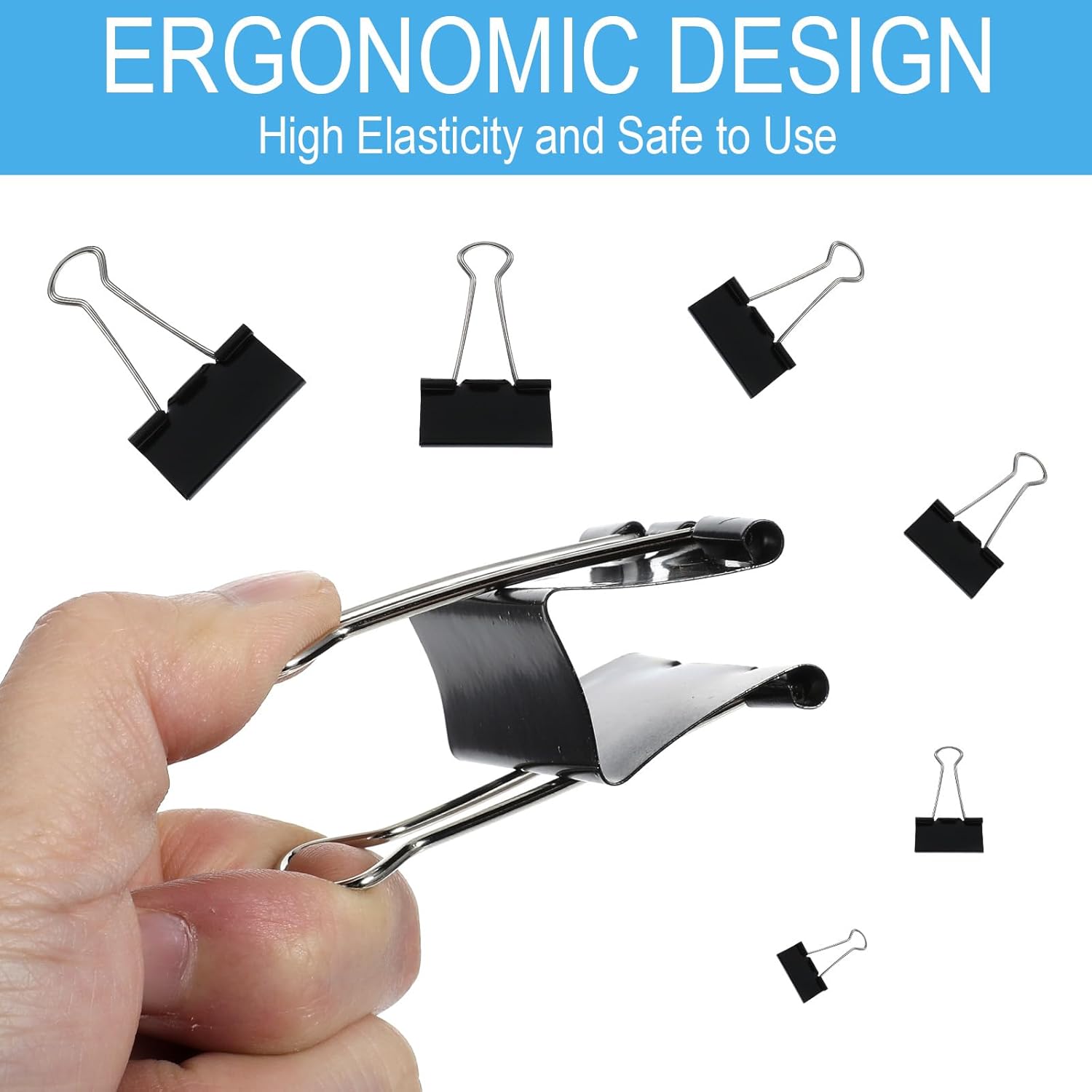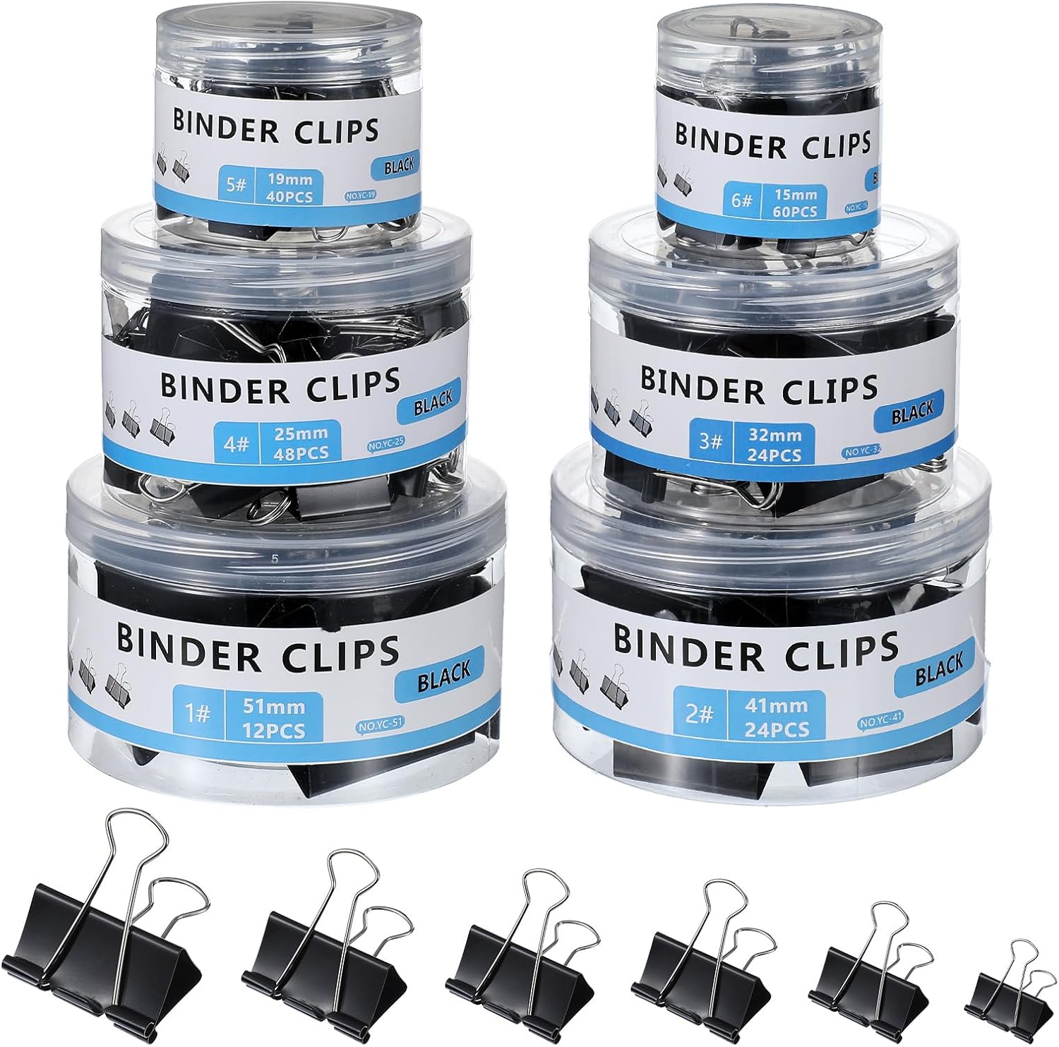 - Package Includes: 208 PCS high quality black binder clips of 6 assorted sizes, in 6 transparent boxes, plastic container convenient for store and fetch, which can meet your different using needs.