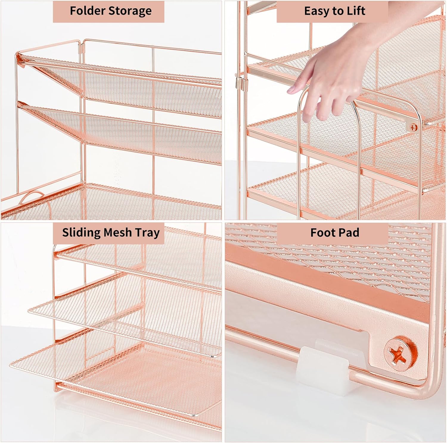 Desk Organizers and Accessories, 6-Tier Letter Tray Paper Organizer, Desktop File Organizer, Office Desk Accessories for Office Supplies (Rose Gold)