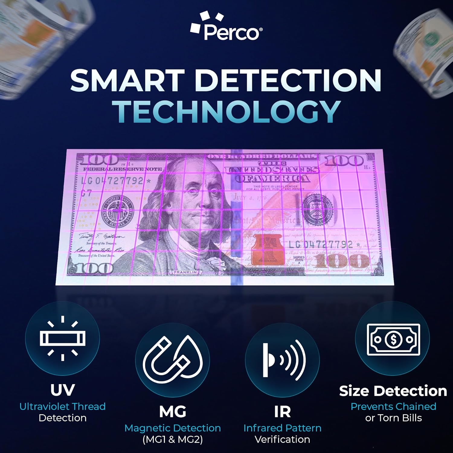 - ADVANCED COUNTERFEIT DETECTION: Detects fake bills with UV, MG1/MG2, and IR sensors. Toggle detection modes based on currency type for maximum accuracy and security.