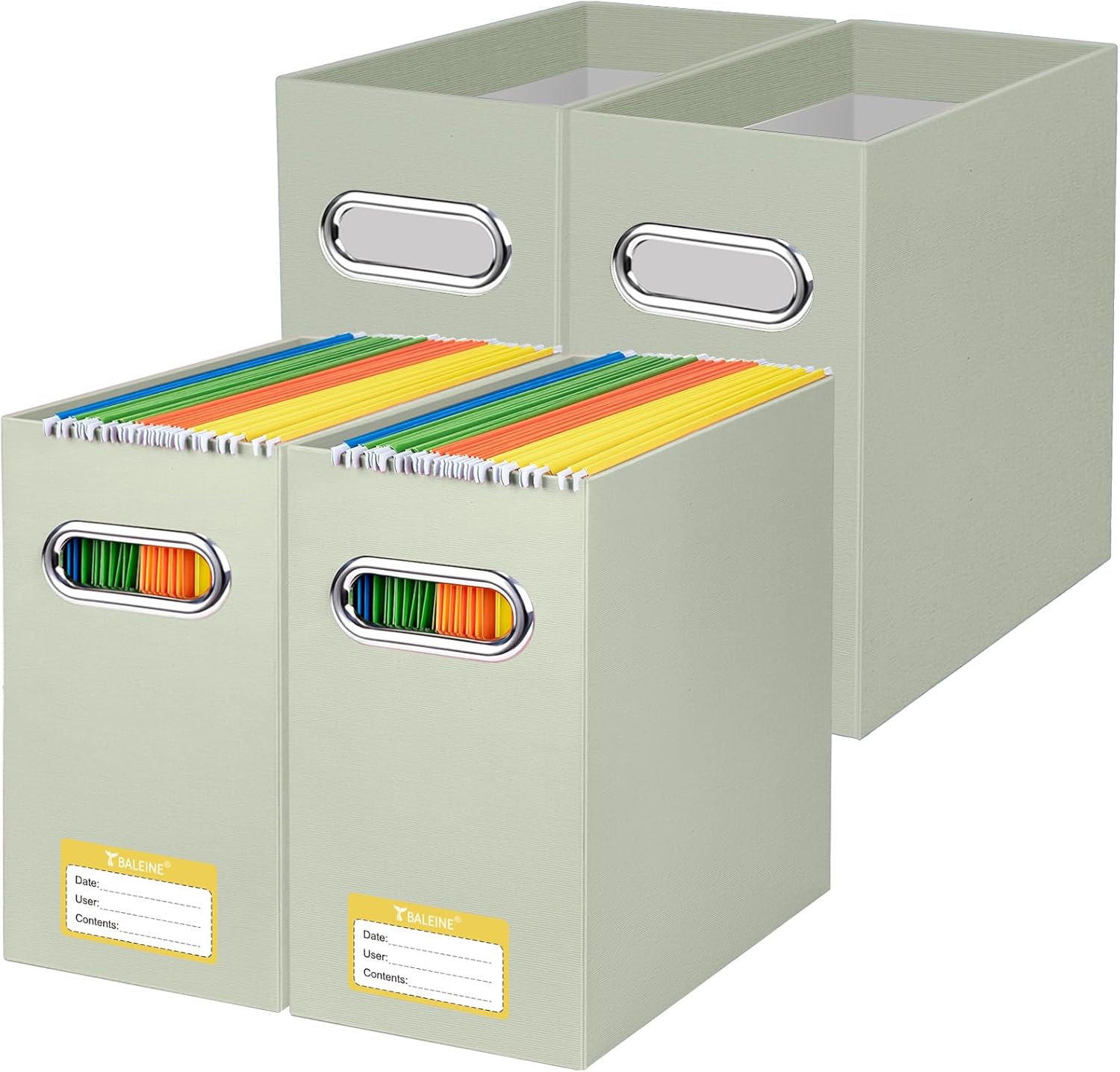 BALEINE File Organizer Box, Cardboard File Folder Organizer with Handle for Letter Size, Portable Collapsible Hanging Filing Box for Home Office Document Storage (4 Pack, Beige)