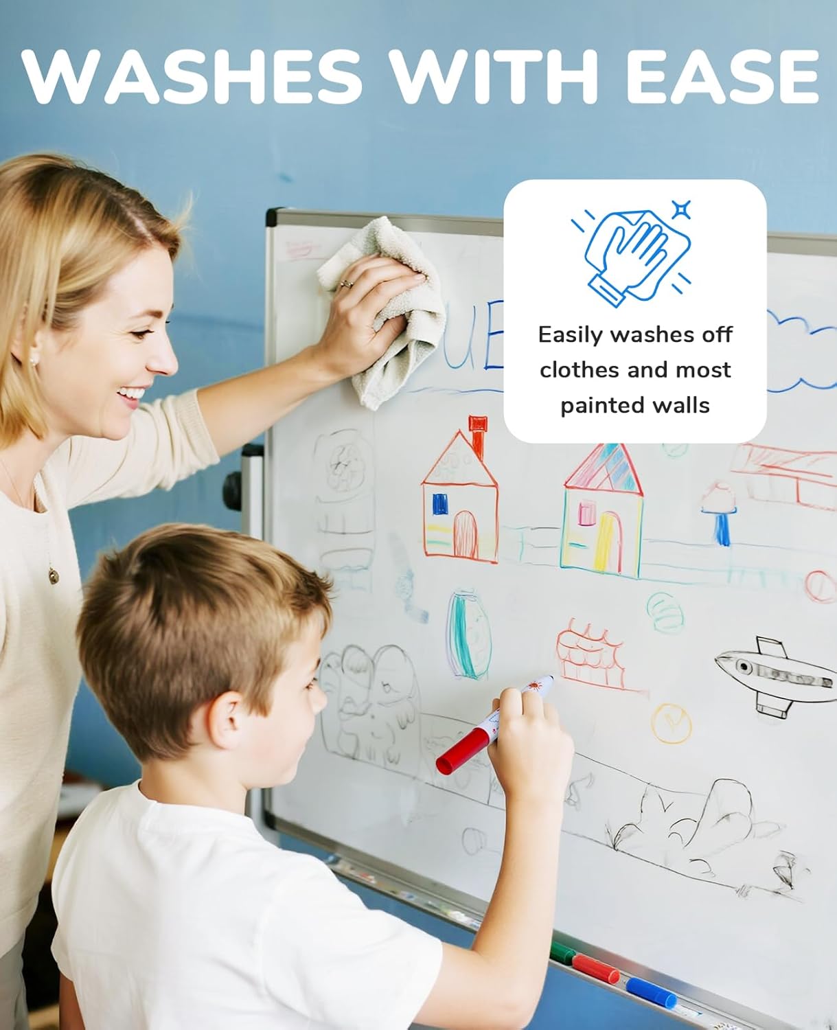 - 【WASHABLE & CHILD-SAFE】Washes off skin/clothes with water! Made with non-toxic materials, ASTM-D4236 certified, Non-odor ink for ages 3+.