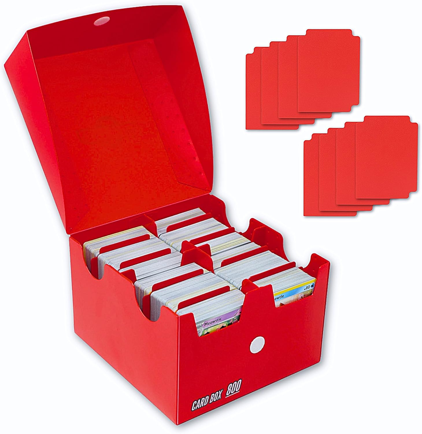 The Collector's Hubs Trading Card Storage Box 800 - Red | Card Box 800+ holds standard 35pt cards | 4-in-1 Compartments| Strong Double Wall Design | 8 dividers | Sports & Baseball Card Deck Box - Red