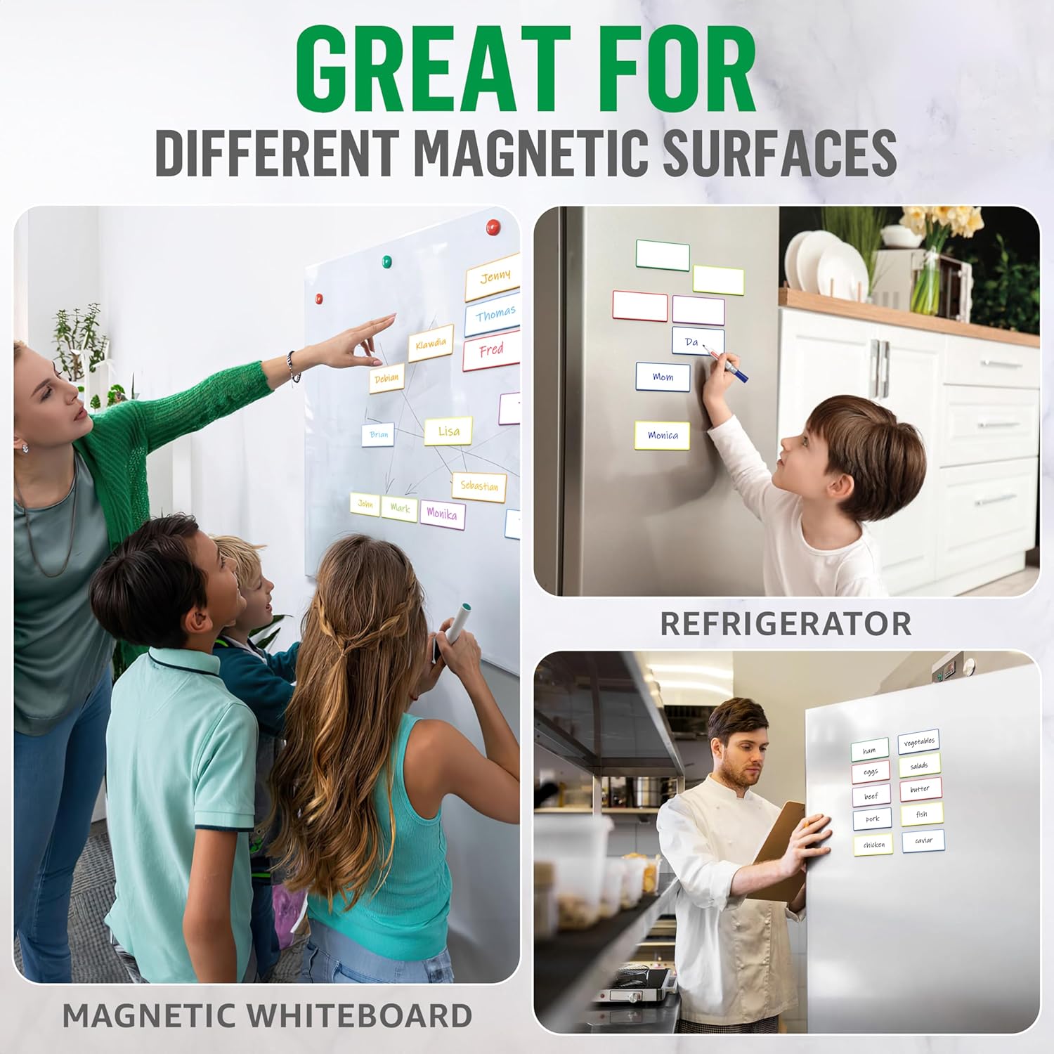 - Dry-Erase Surface - Enjoy a reusable writing surface with our magnetic dry erase labels. These versatile write on magnets let you jot down notes and tasks repeatedly. Perfect as blank magnets to write on, saving paper and waste.