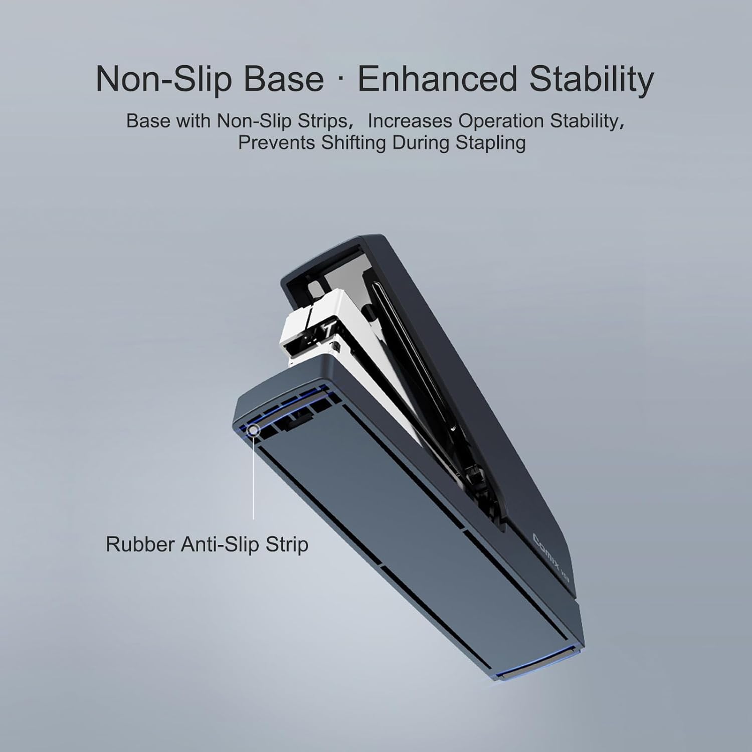 Comix Desk Stapler, 40 Sheet Capacity, Quick-Change Pop-Up Stapler Track, for Office & Classroom, Blue&Gray