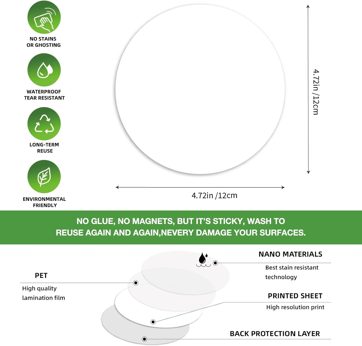 SVNOOC Multi-Use Dry Erase Labels Sticky Notes Reusable Stickers for Wall Desk Fridge Classroom Office Home and More, Message Board with 2 Markers (5" in Circle White), 12 Pack