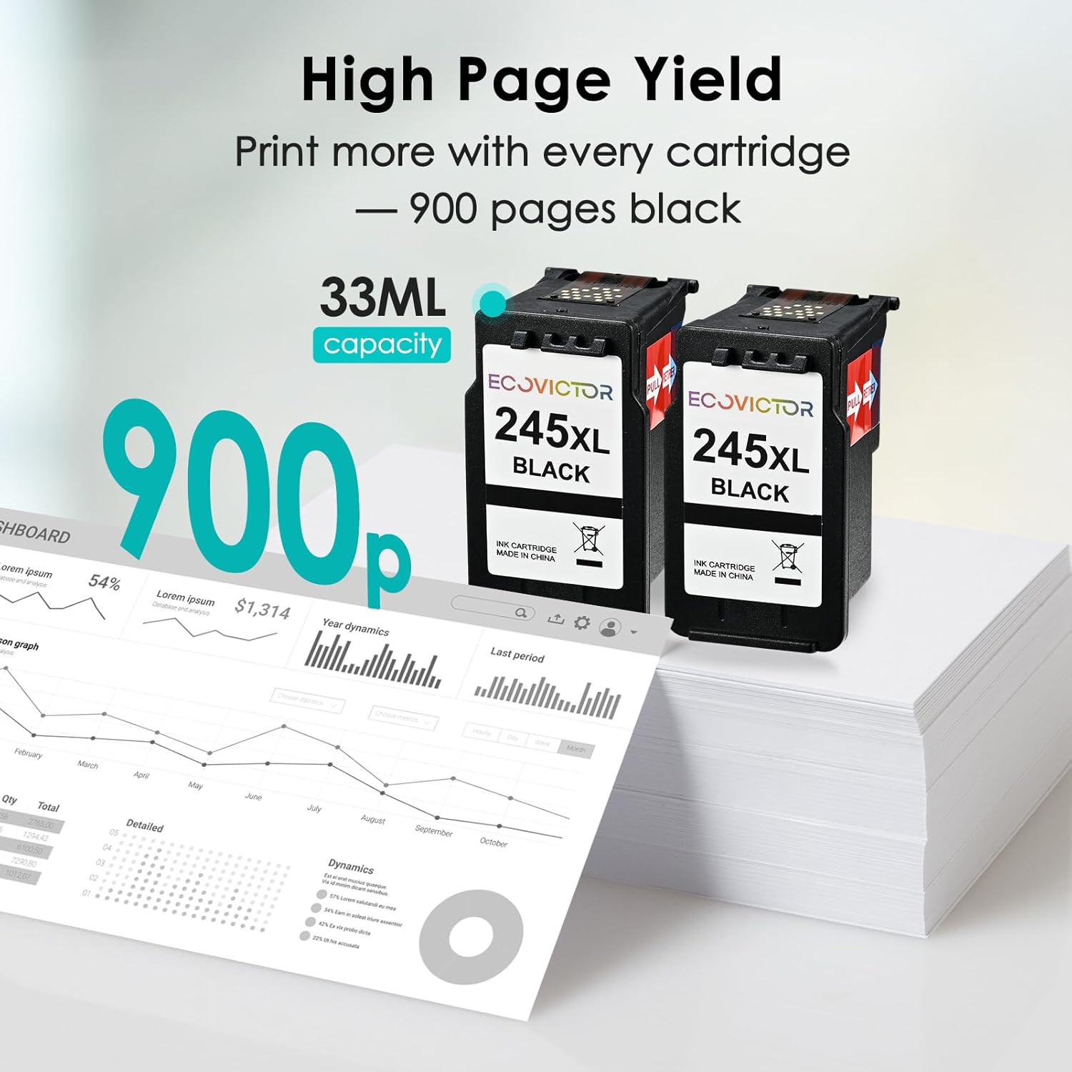 - Vivid, Professional Results: Formulated with premium-quality ink, our 245xl replacement for canon printer ink 245 delivers crisp, clear text and rich, vibrant images. EcoVictor 245 xl for canon 245 ink is perfect for everyday documents, schoolwork, creative projects, and photos—fade-resistant and smudge-proof.