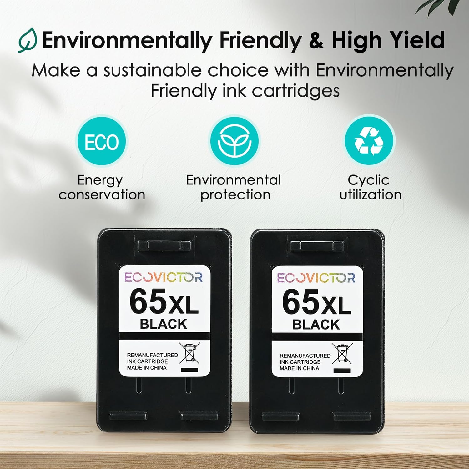 - Eco-Friendly & Certified: Made from durable, non-toxic materials, our remanufactured 65 xl hp ink cartridges black replacement for hp ink 65xl black is Climate Pledge Friendly certified, supporting sustainability while providing reliable performance. Print smarter and greener with EcoVictor 65 xl black ink cartridge for hp printers