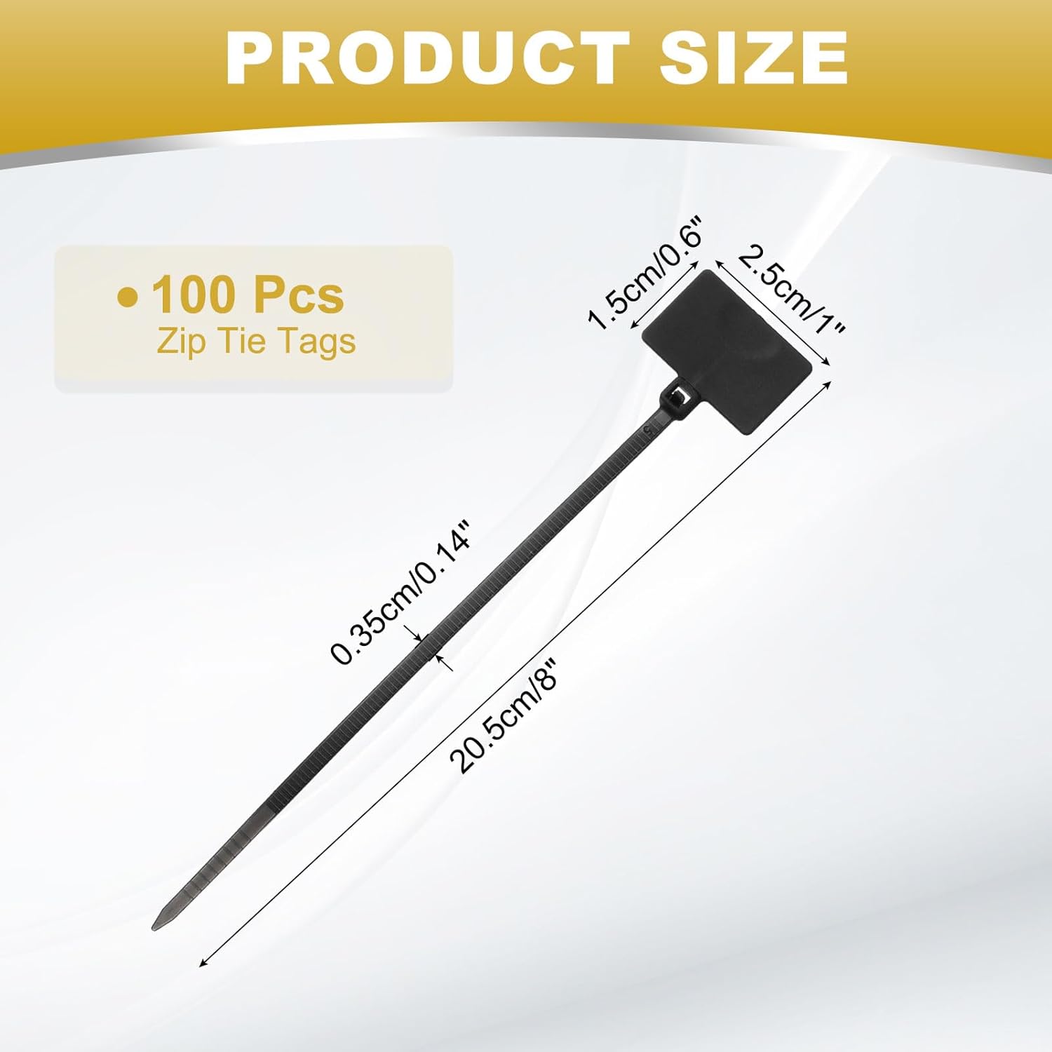 uxcell 100 Pcs Cable Label Marker Tags, Nylon Cable Zip Tie Tags 8.7 Inch Writable Self-Locking Wire Labels Zip Ties for Organization Marking, Black
