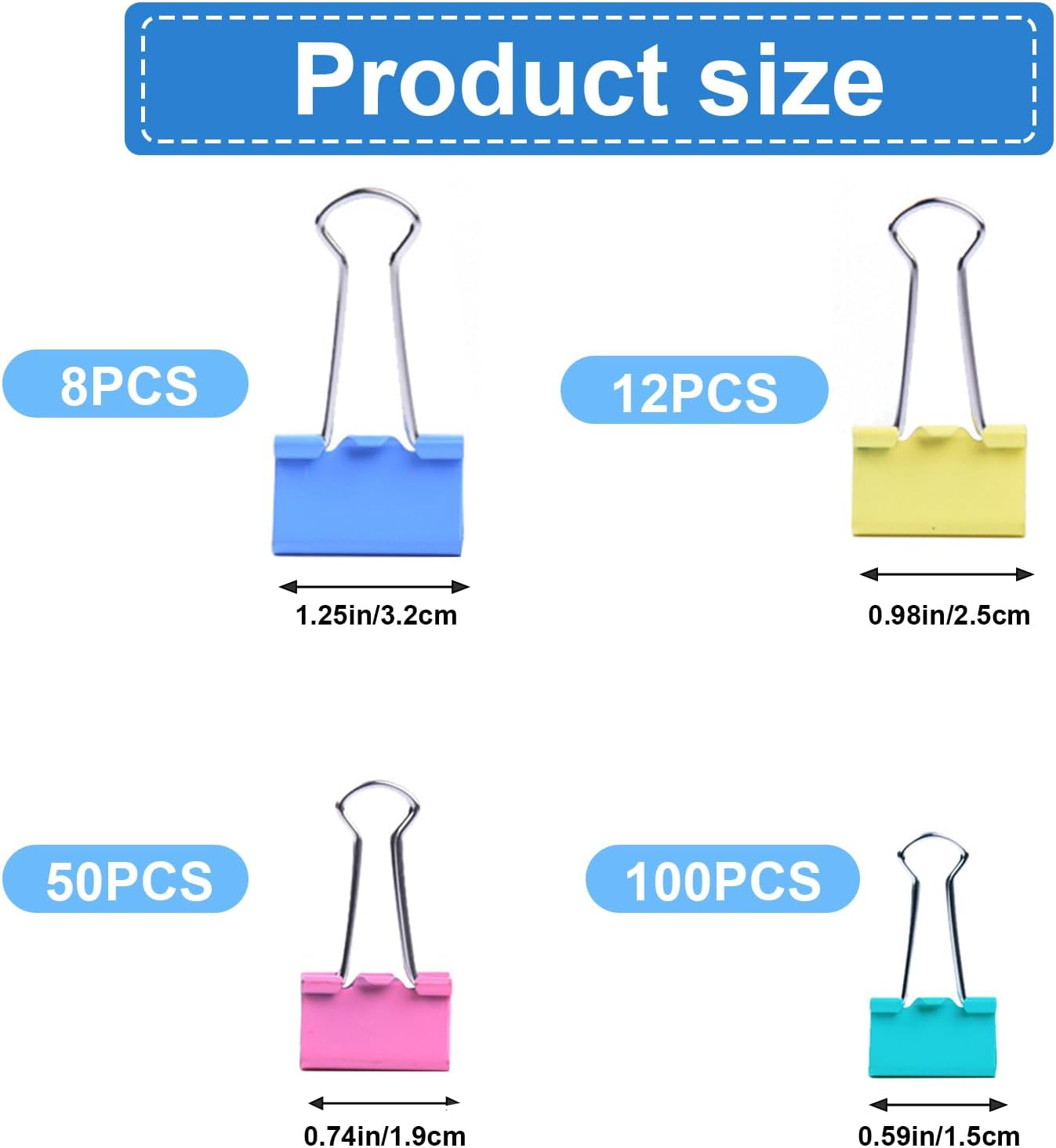 170 Pcs Binder Clips Assorted Sizes, Colored Large, Medium, Small Binder Paper Clips for Office Supplies, Home, School Document Organizing (Blue, Pink, Yellow, Green)
