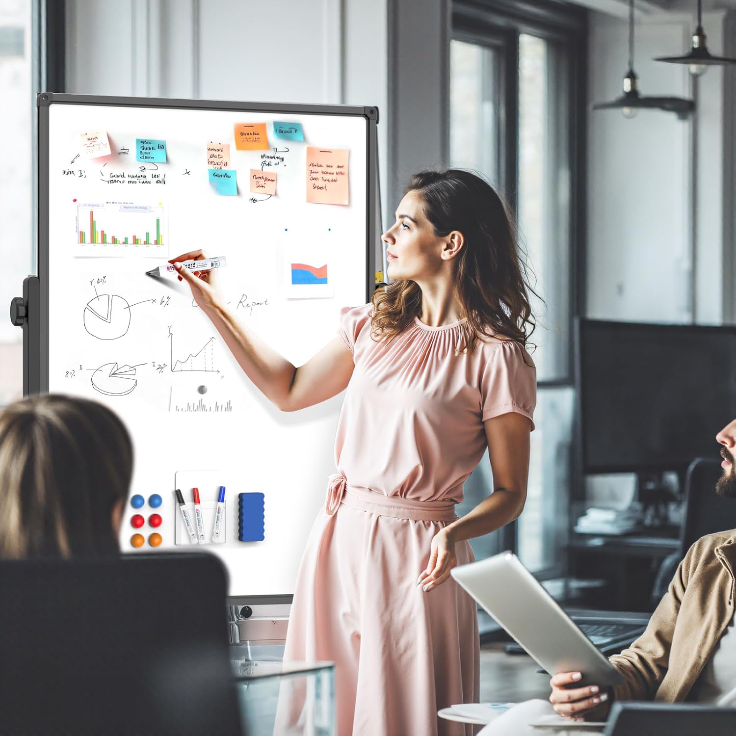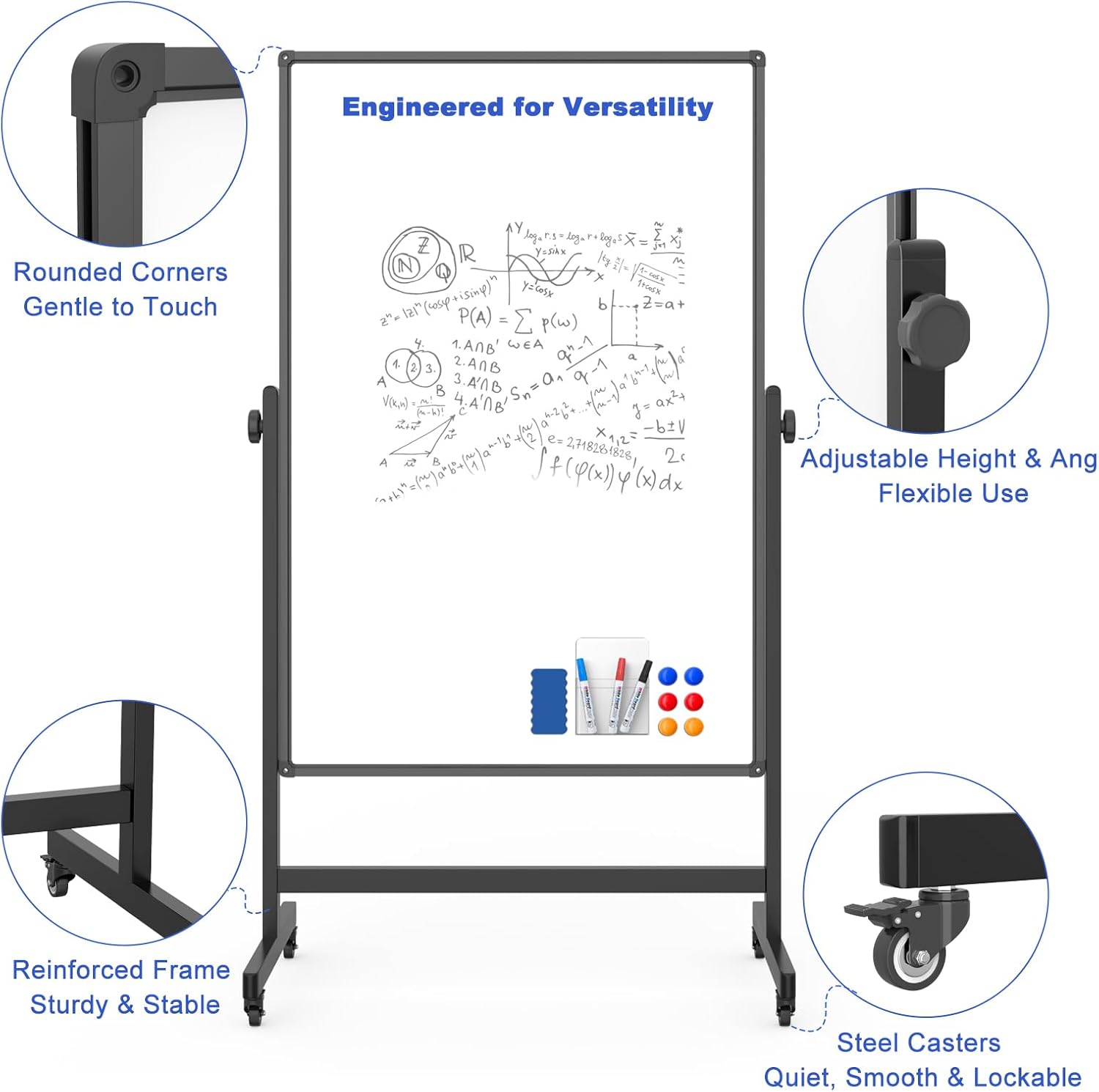 - Double-Sided Magnetic Dry Erase Surface: Double your writing space with this reversible magnetic whiteboard that rotates effortlessly and locks in place. Both sides provide a smooth, durable dry erase surface—ideal for teaching, planning, presentations, or posting notes with magnets.