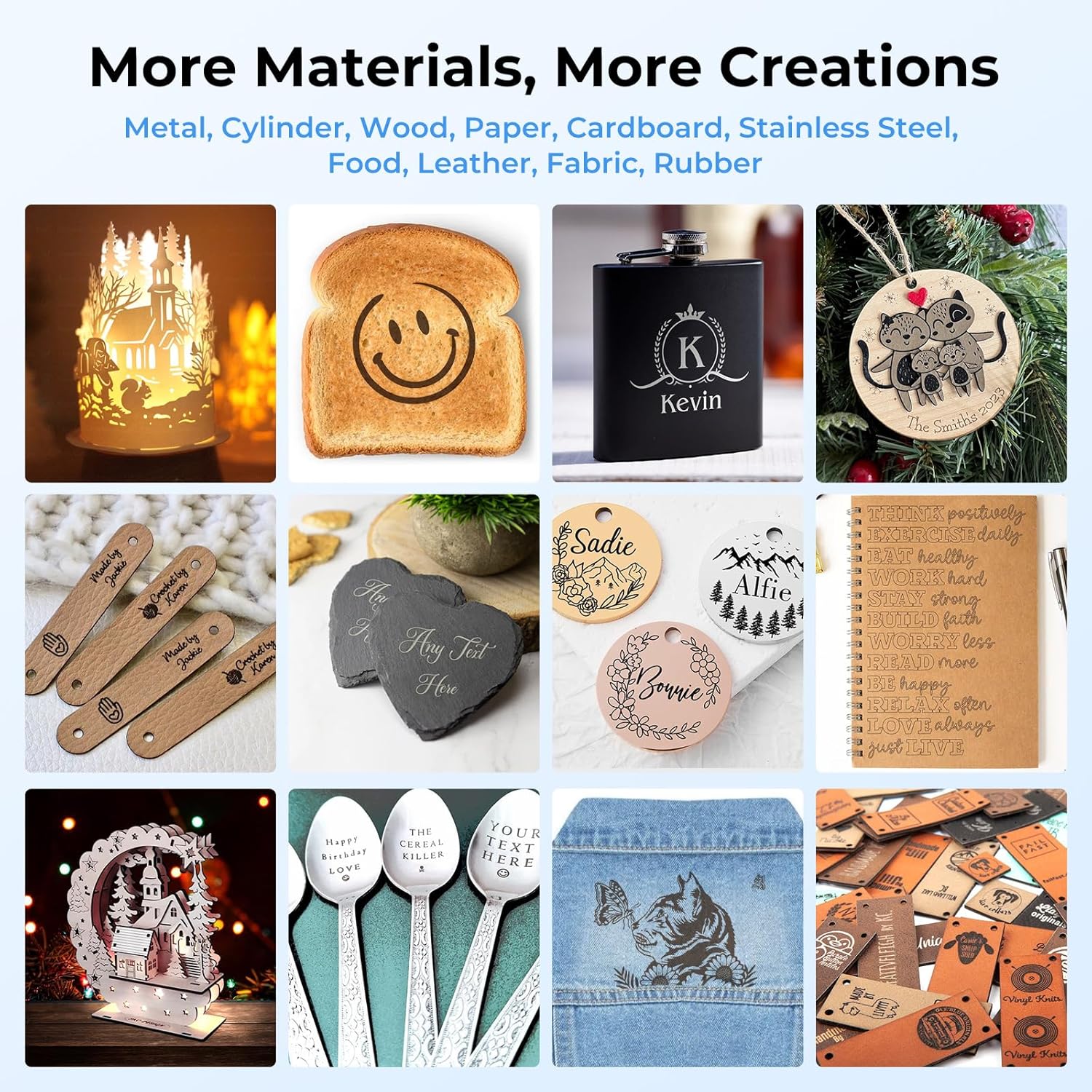 - 【Works with 200+ Materials】Engrave on wood, leather, acrylic, and more—perfect for a wide range of creative projects. Laser class 4, power output level 7500 mW.