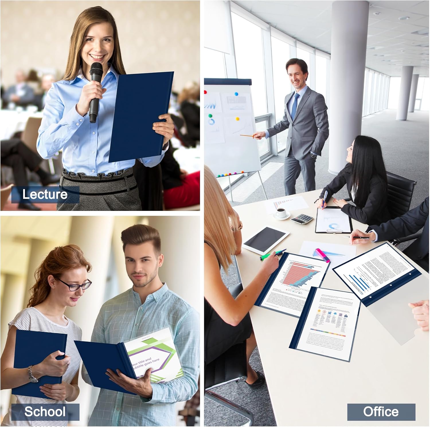- Clear Front Report Cover with Navy Blue Back: Quickly identify and access your documents without opening the cover while the Navy Blue back provides professional and stylish look, perfect for business presentations and academic, meetings, or interviews where fast retrieval matters