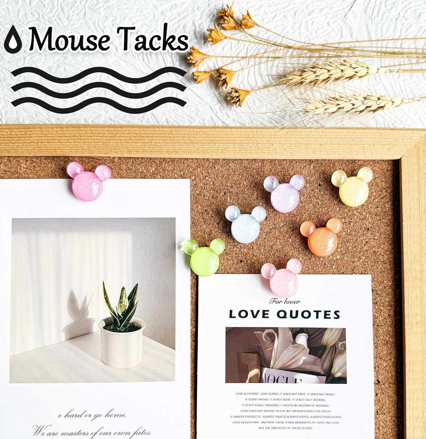 - Thumb Tacks: These decorative push pins are made of resin and tacks, will not deform and can be recycled for long time!