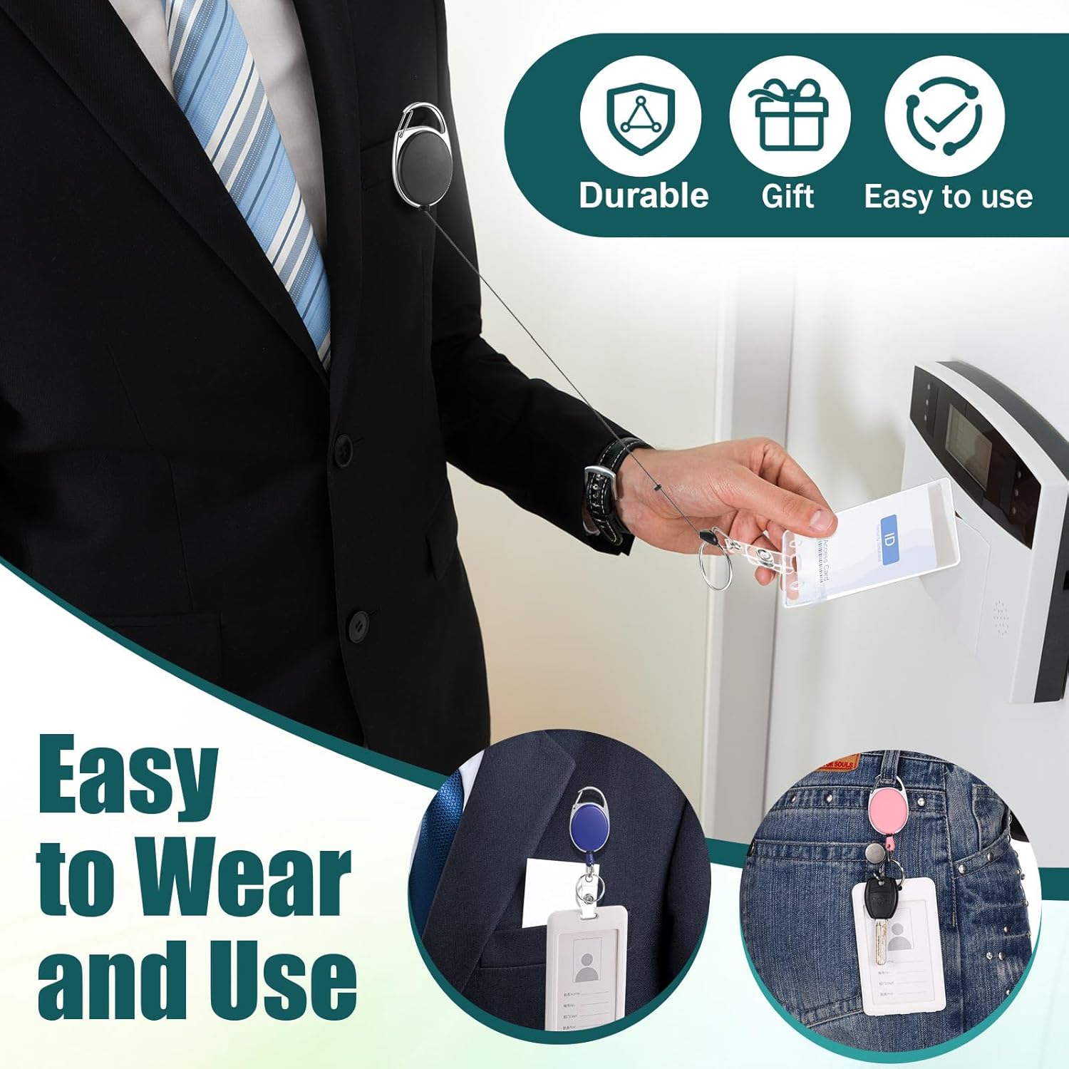 - Package Includes: you will get 80 packs of retractable badge clips, featuring plastic covers, keychain, retractable reel clip for fastening to belt loops, straps, backpacks, bags effortlessly and quickly, allow a quick and easy way to scan or swipe your badge