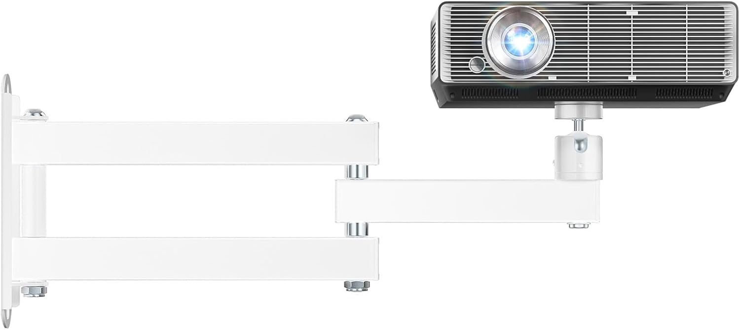 WALI Foldable Projector Wall Mount Universal Adjustable Wall Projector Mount Aluminum Alloy Projectors Stand,1/4" M4 M6 Screw Size,(1330LM-PMW), White