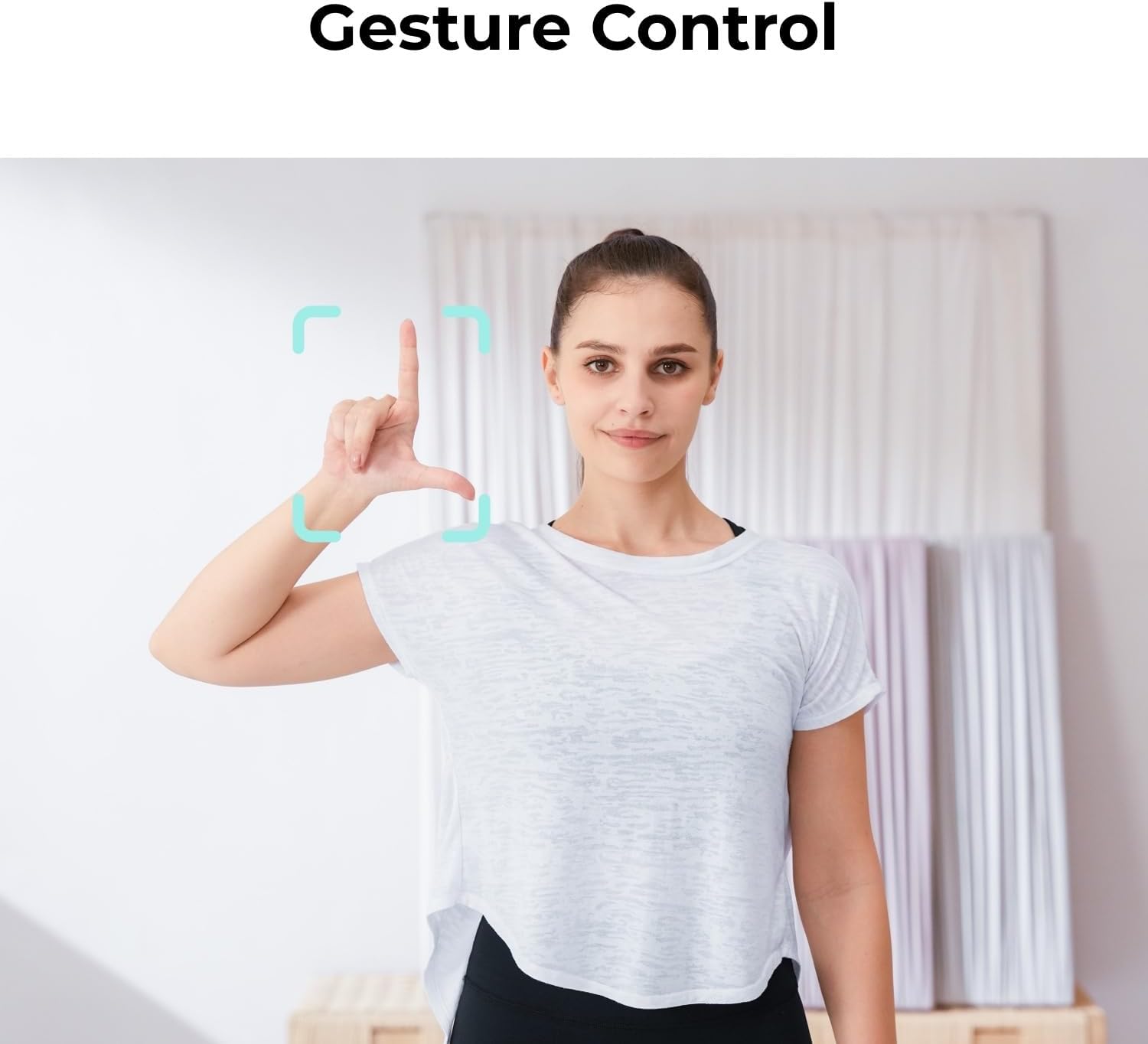 - 【Intuitive Gesture Control】 Control your webcam hands-free: Show your 🖐 palm to toggle AI framing, or point 👆 to zoom. No manual adjustments needed during important calls or streams.