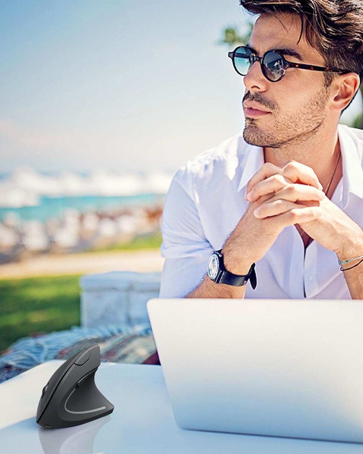 - Ergonomic Mouse, Vertical Sleek Design: Experience natural fatigue relief and pain-free comfort. This cool wireless ergonomic mouse encourages a healthy, natural handshake grip, providing support for your forearm and wrist to minimize carpal tunnel strain and discomfort compared to standard mice. It is ideal for office workers, designers, travelers, and anyone in search of an all-day comfortable mouse. Relax your palm and enjoy a seamless, pain-free workflow