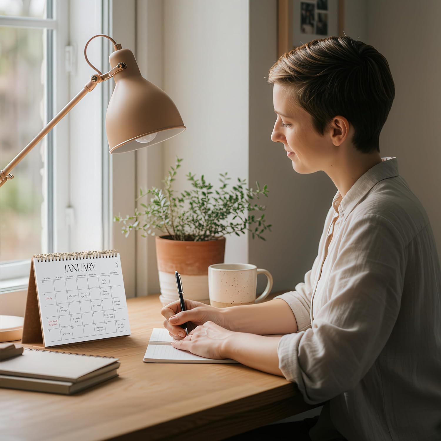 Small Desk Calendar 2025-2026, Jokotha Standing Flip Calendar, September 2025 to December 2026, 16 Month Desktop Calendar with Stickers & Minimalist Design, 8"x6"