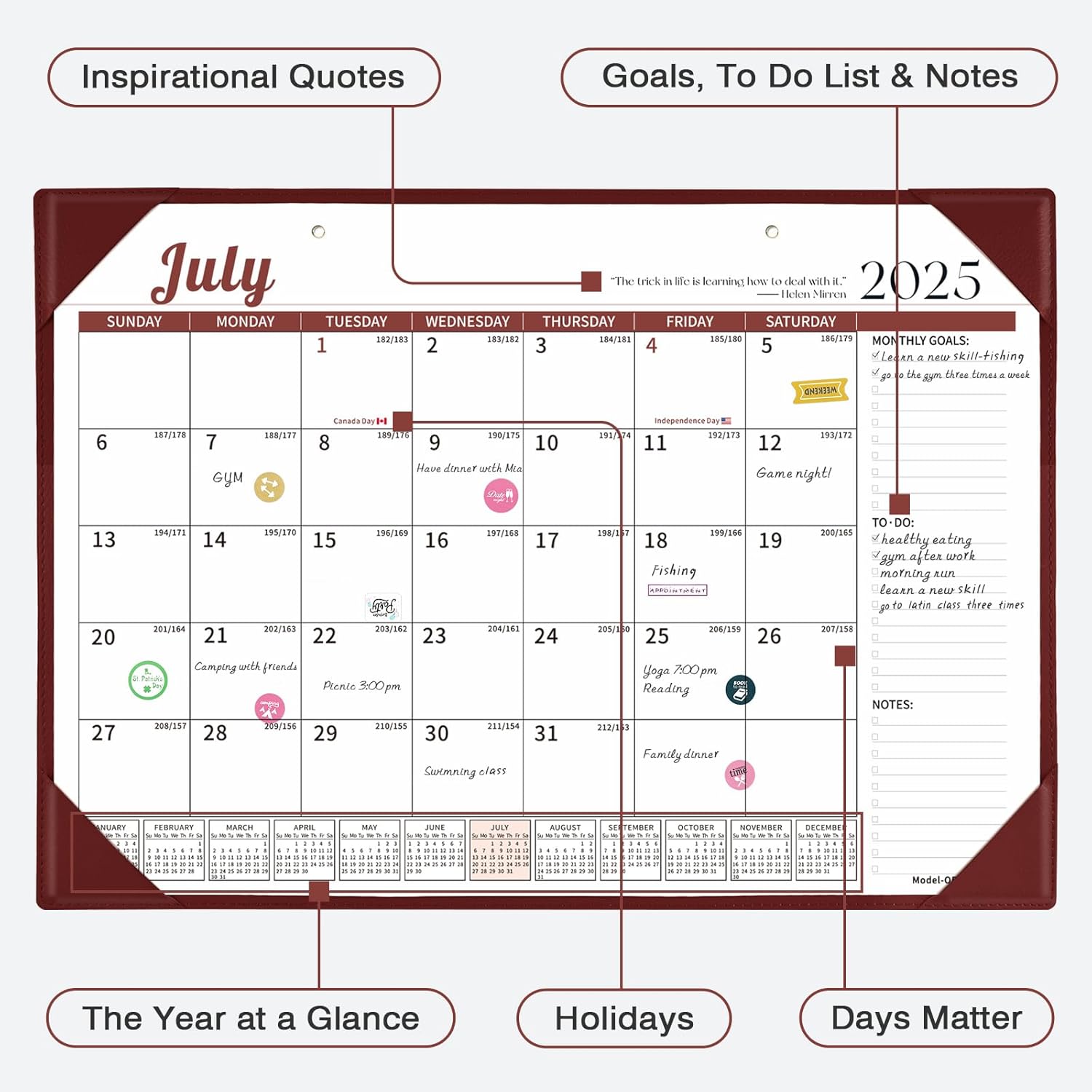 Ospelelf Desk Calendar 2025-2026 Wall Monthly Planner 12"x17" Leather Pad with Protective Cover 18 Months July 2025 to December 2026 Brown