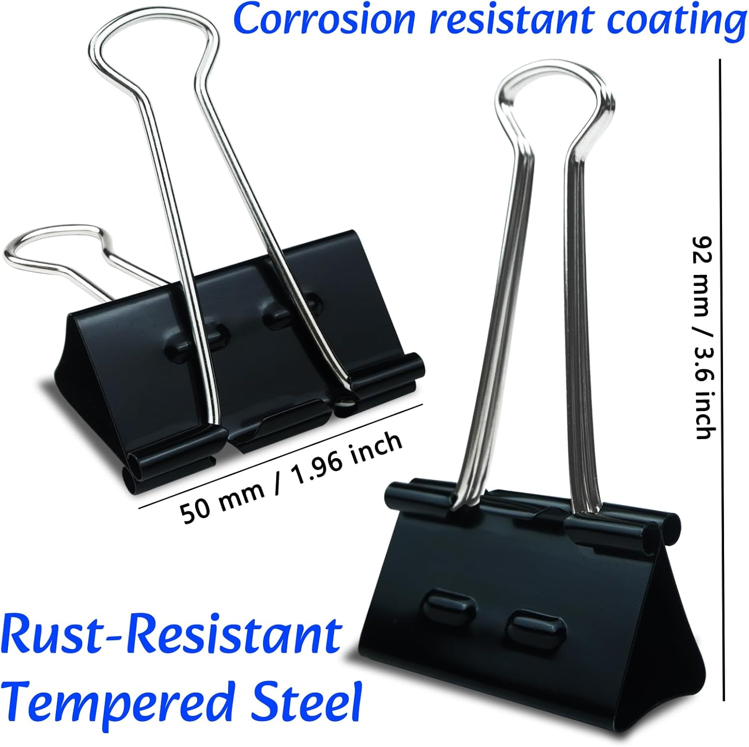 2 Inch Binder Clips(12 Pack), Extra Large Binder Clips Heavy Duty Paper Clamps for Office and Home Supplies, Black