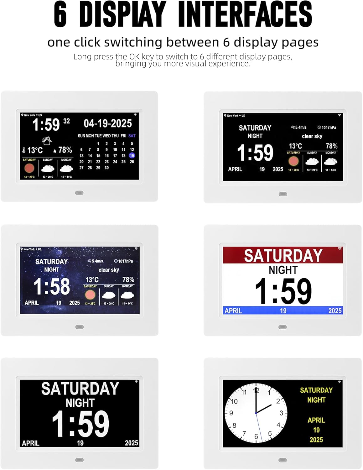 - 【Elderly-Friendly Design】: With a large 7-inch IPS full-view HD screen, extra-large fonts, customizable colors, and voice time announcements, this clock caters to the needs of the elderly, ensuring clear readability and accessibility.